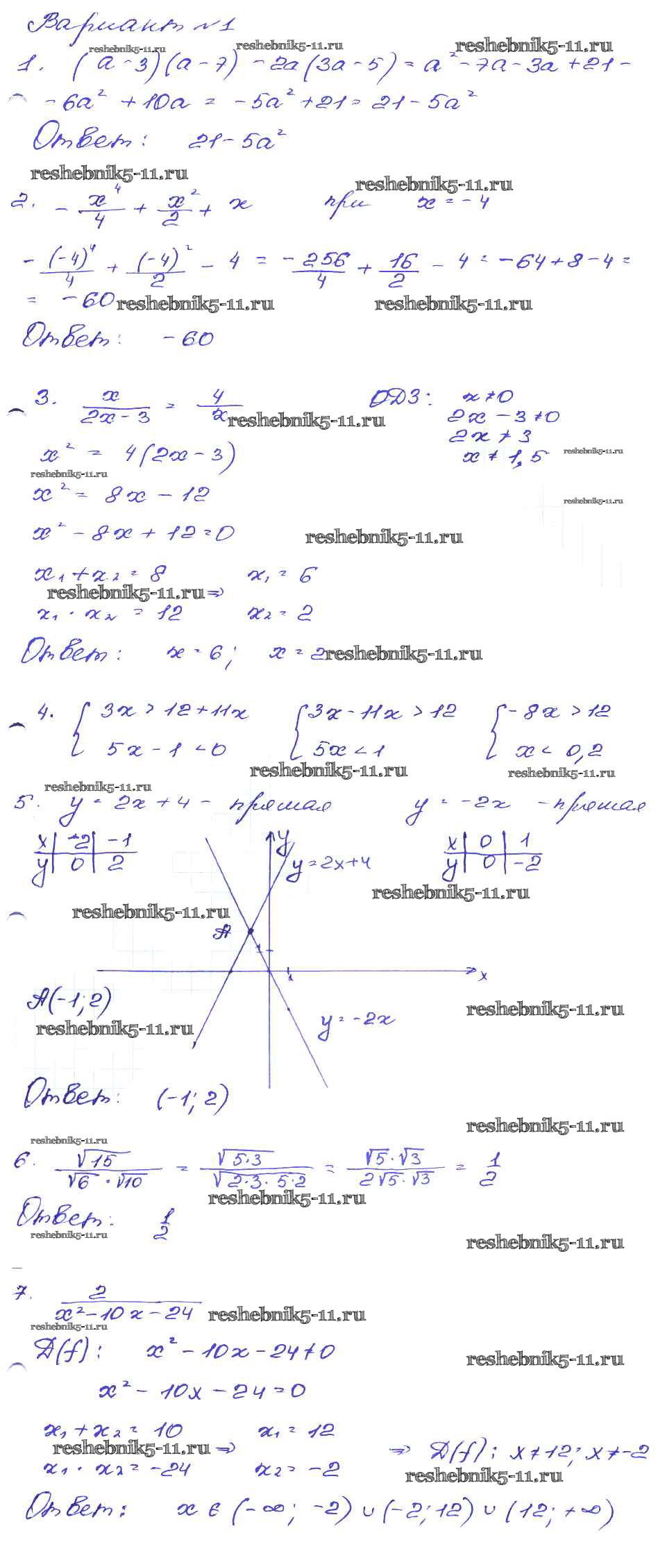 Готовая домашняя работа с ответами по Алгебре за 9 класс Кузнецова, Бунимович, Пигарев, Суворова Сборник заданий Дрофа 2008 ФГОС - Работа 41 Вариант-1