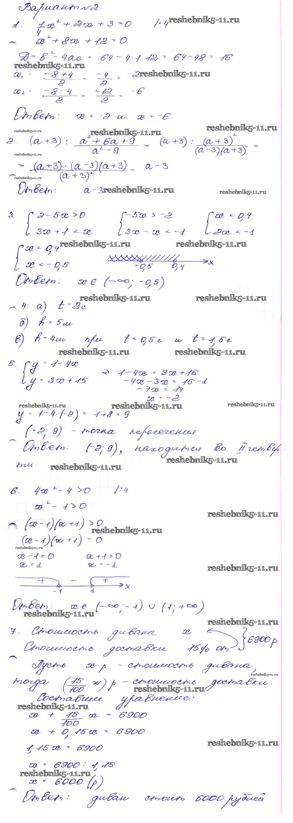 Готовая домашняя работа с ответами по Алгебре за 9 класс Кузнецова, Бунимович, Пигарев, Суворова Сборник заданий Дрофа 2008 ФГОС - Работа 42 Вариант-2