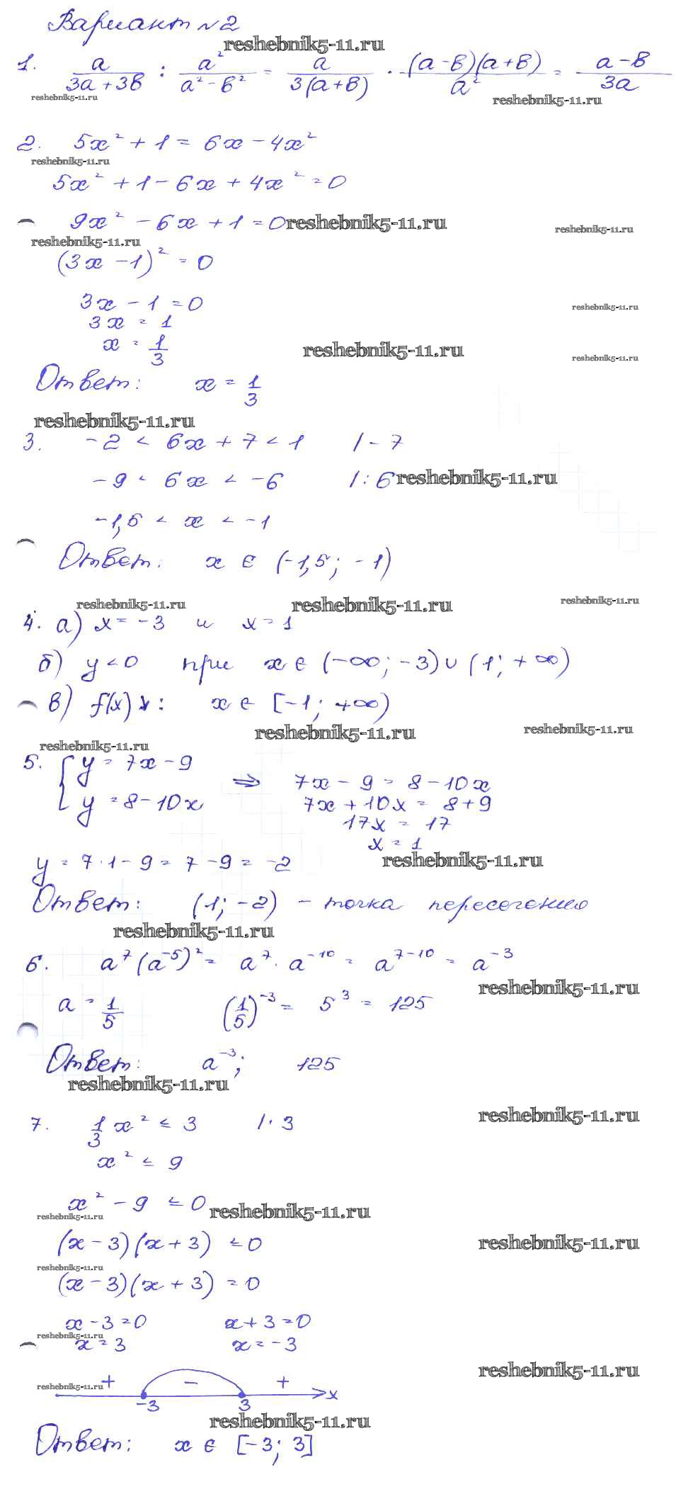 Готовая домашняя работа с ответами по Алгебре за 9 класс Кузнецова, Бунимович, Пигарев, Суворова Сборник заданий Дрофа 2008 ФГОС - Работа 45 Вариант-2