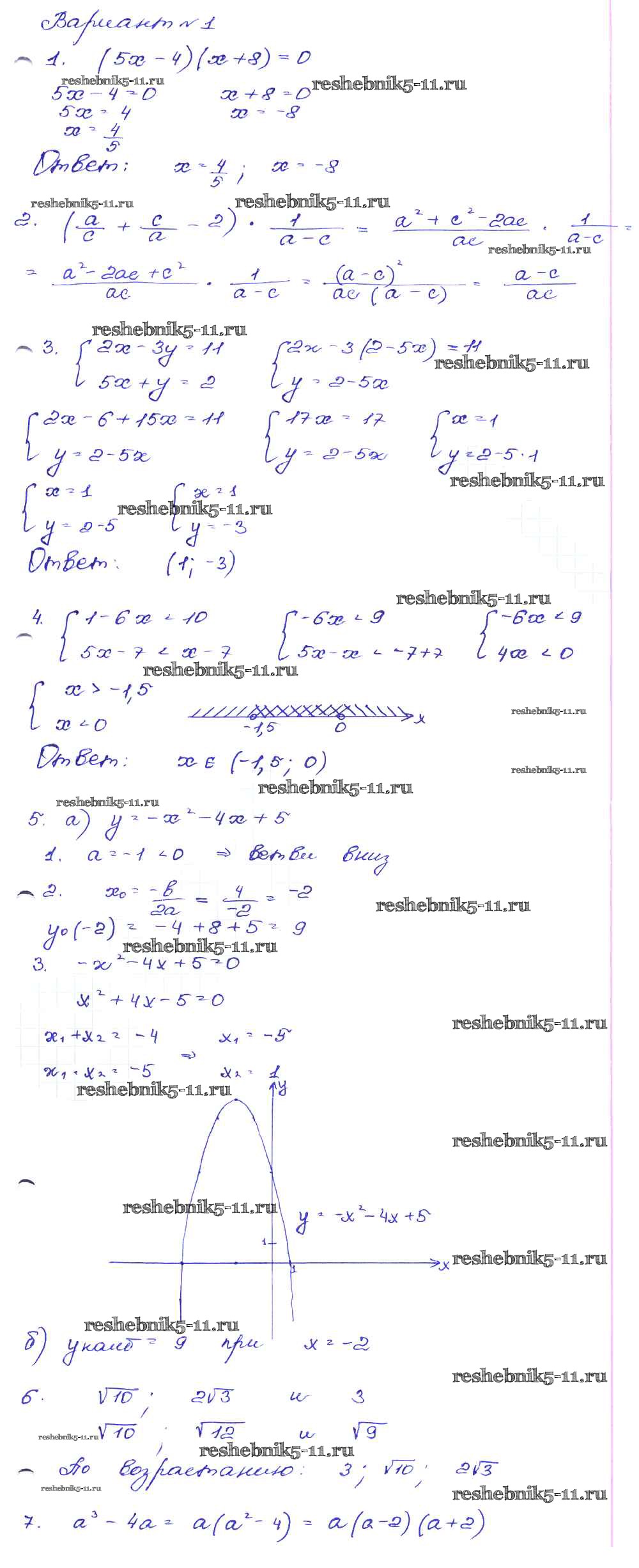 Алгебра за 9 класс Кузнецова Сборник заданий Дрофа работа 46 Вариант-1
