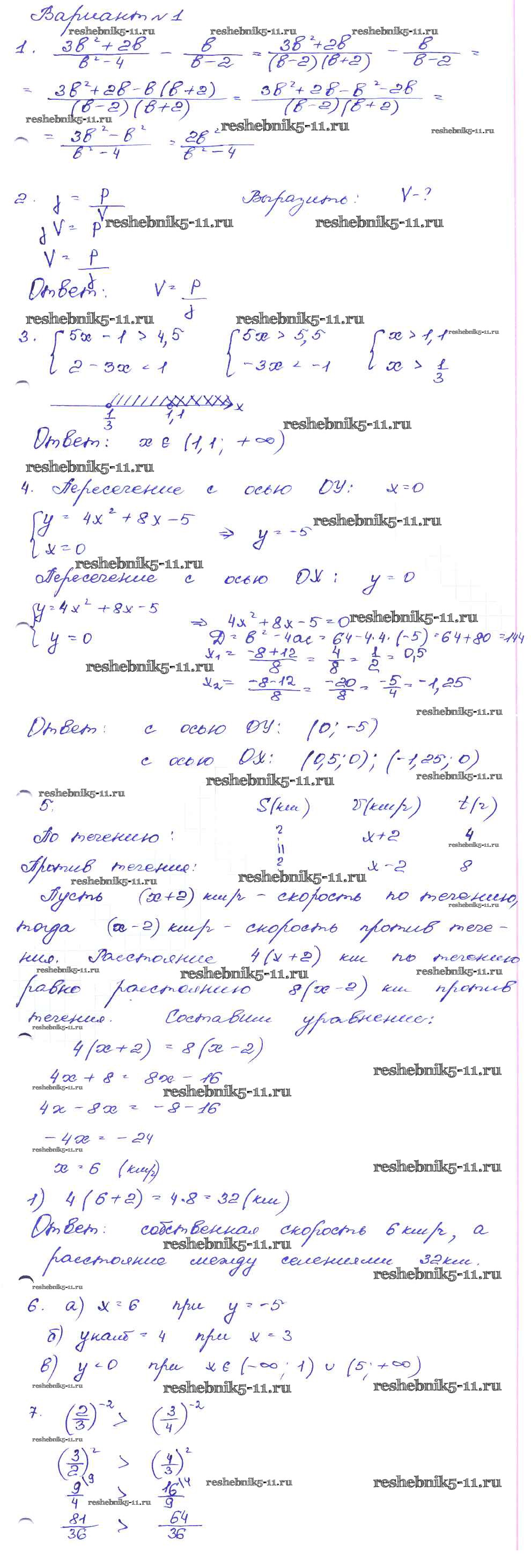 Готовая домашняя работа с ответами по Алгебре за 9 класс Кузнецова, Бунимович, Пигарев, Суворова Сборник заданий Дрофа 2008 ФГОС - Работа 47 Вариант-1