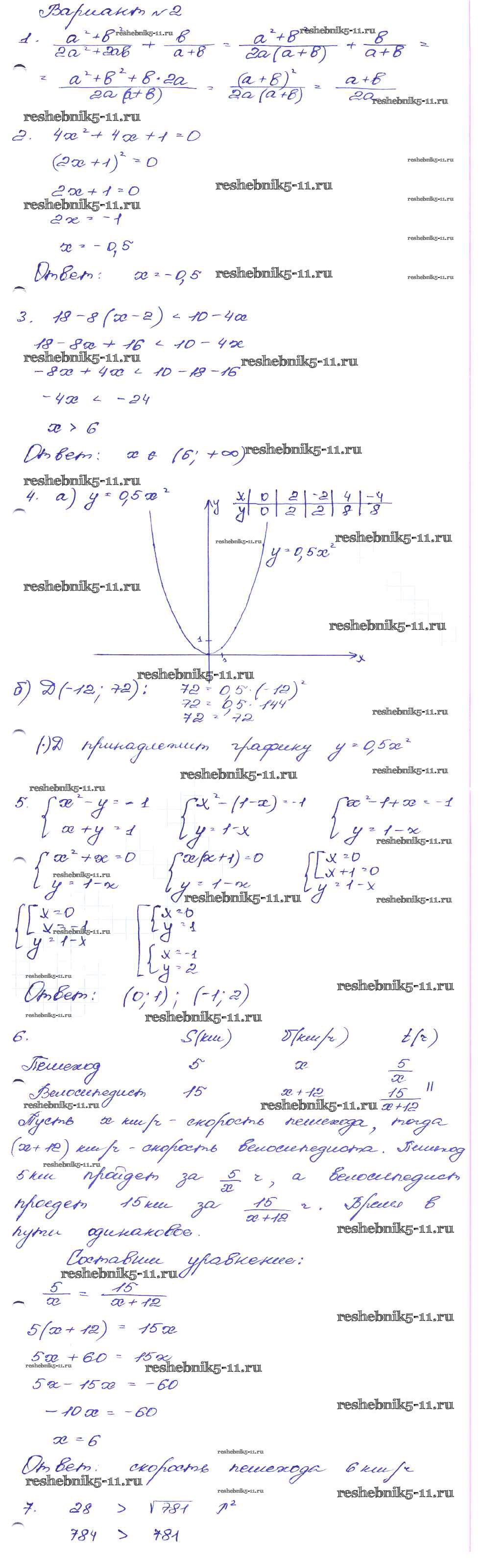 Готовая домашняя работа с ответами по Алгебре за 9 класс Кузнецова, Бунимович, Пигарев, Суворова Сборник заданий Дрофа 2008 ФГОС - Работа 53 Вариант-2