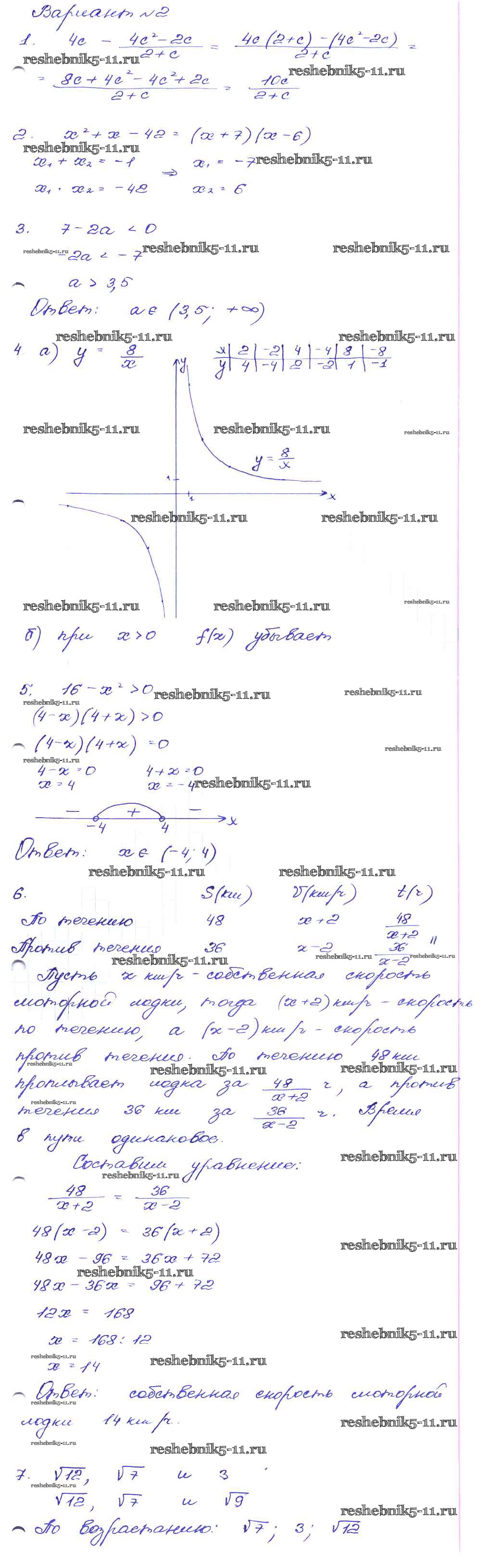 Алгебра за 9 класс Кузнецова Сборник заданий Дрофа работа 54 Вариант-2