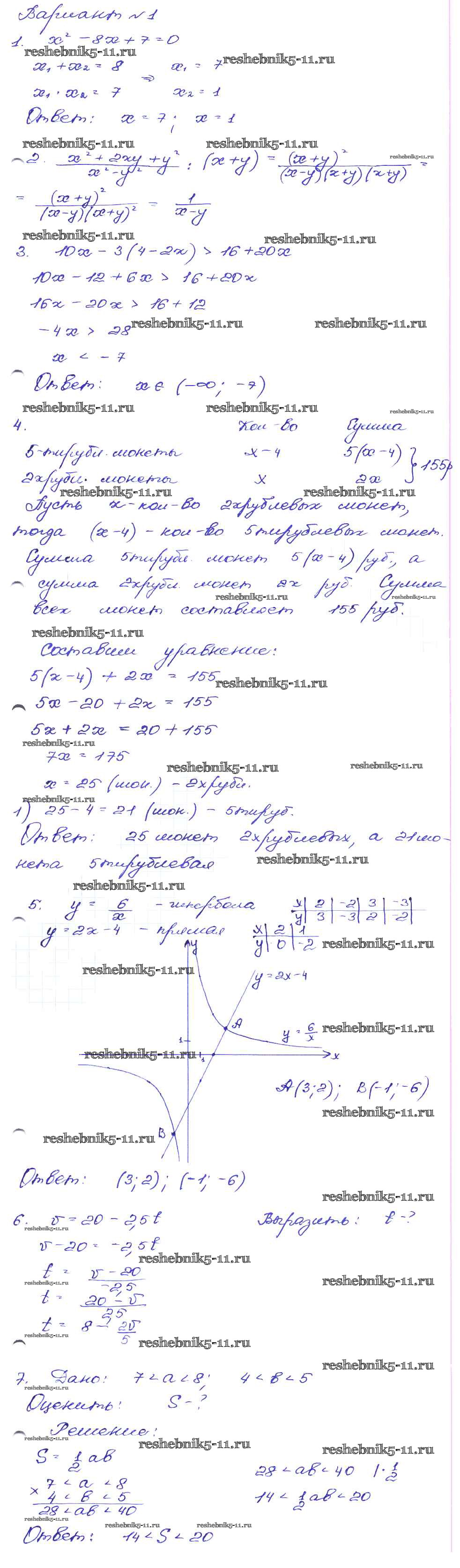 Готовая домашняя работа с ответами по Алгебре за 9 класс Кузнецова, Бунимович, Пигарев, Суворова Сборник заданий Дрофа 2008 ФГОС - Работа 55 Вариант-1