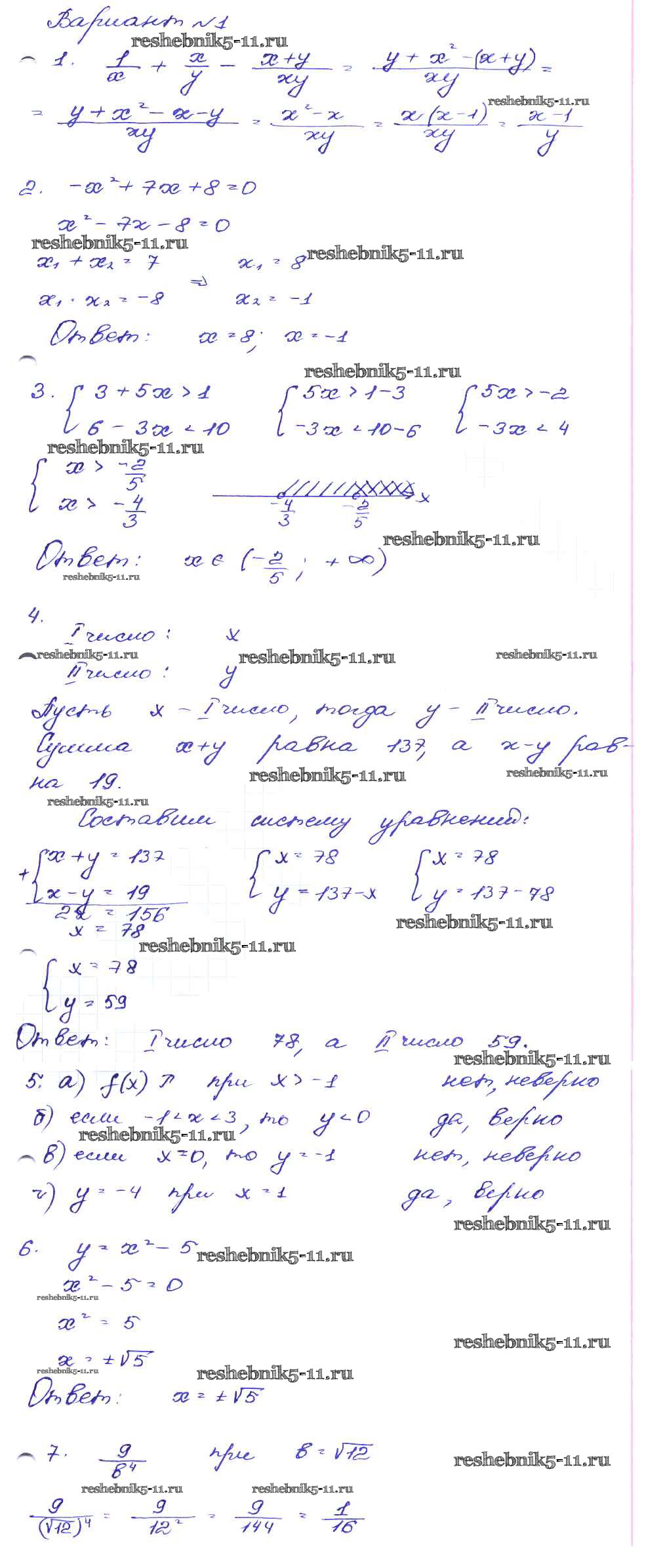 Готовая домашняя работа с ответами по Алгебре за 9 класс Кузнецова, Бунимович, Пигарев, Суворова Сборник заданий Дрофа 2008 ФГОС - Работа 58 Вариант-1