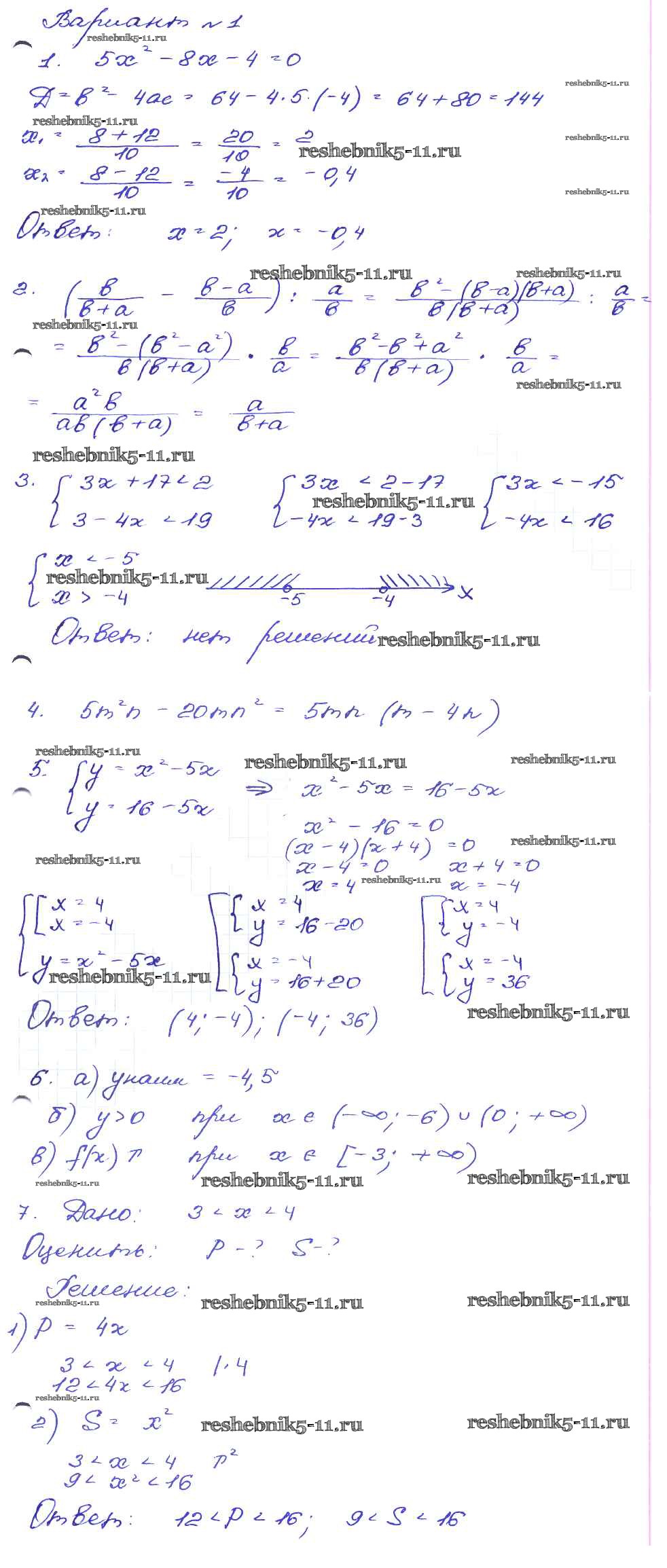 Готовая домашняя работа с ответами по Алгебре за 9 класс Кузнецова, Бунимович, Пигарев, Суворова Сборник заданий Дрофа 2008 ФГОС - Работа 60 Вариант-1