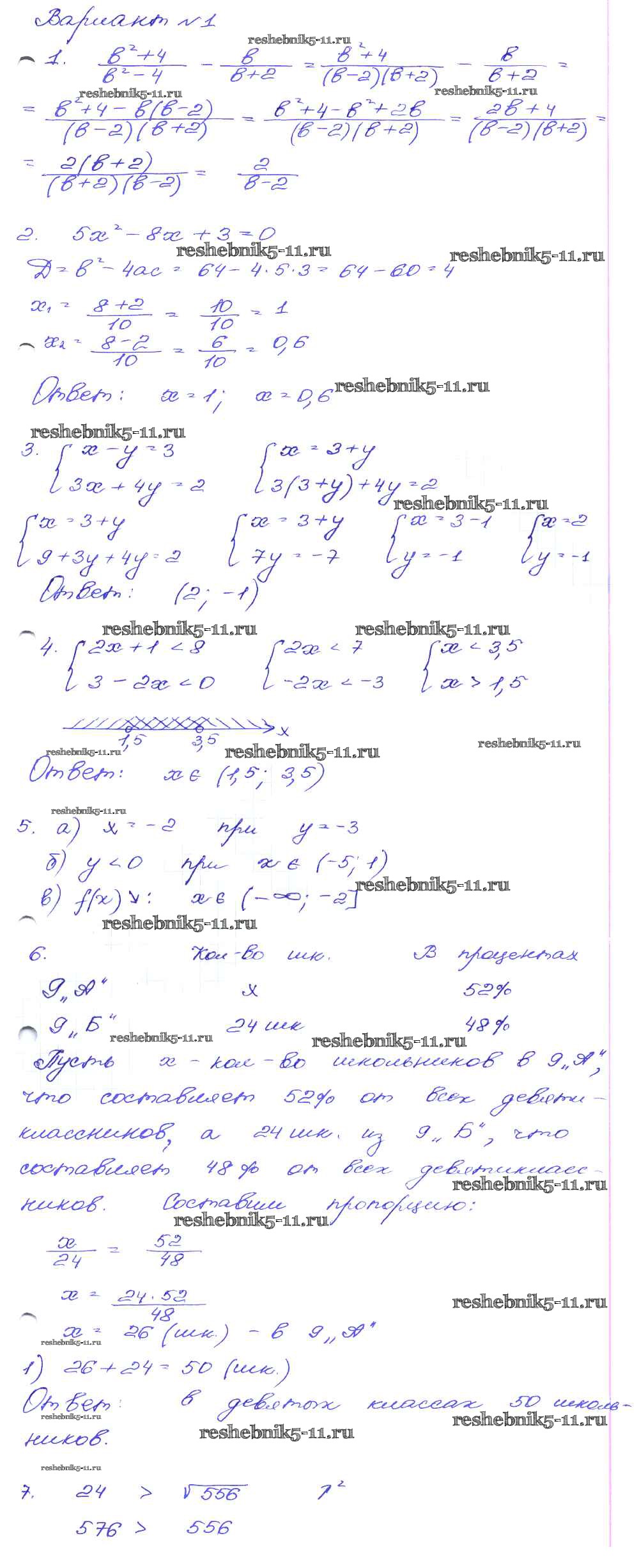 Готовая домашняя работа с ответами по Алгебре за 9 класс Кузнецова, Бунимович, Пигарев, Суворова Сборник заданий Дрофа 2008 ФГОС - Работа 66 Вариант-1