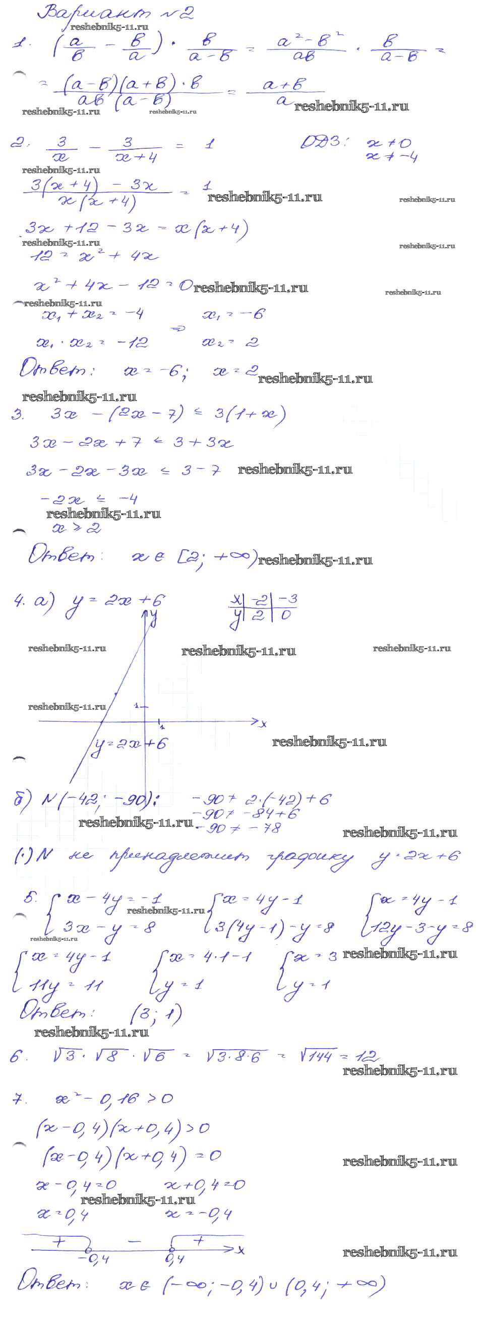 Готовая домашняя работа с ответами по Алгебре за 9 класс Кузнецова, Бунимович, Пигарев, Суворова Сборник заданий Дрофа 2008 ФГОС - Работа 67 Вариант-2