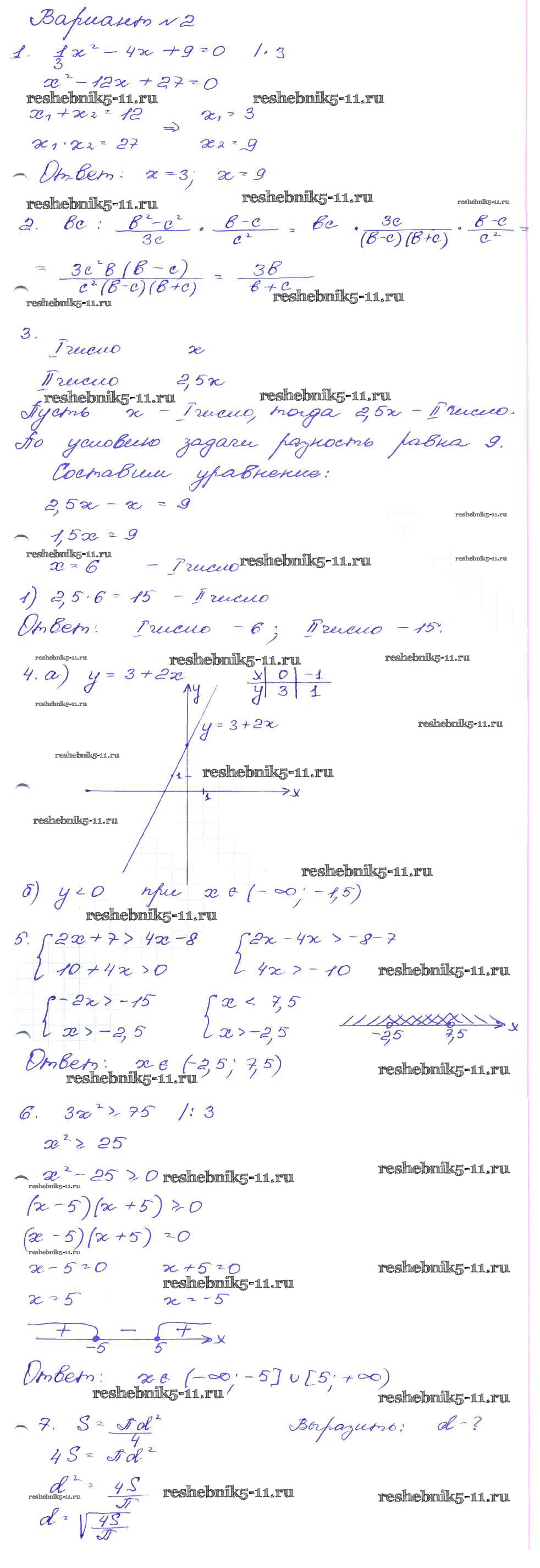 Готовая домашняя работа с ответами по Алгебре за 9 класс Кузнецова, Бунимович, Пигарев, Суворова Сборник заданий Дрофа 2008 ФГОС - Работа 72 Вариант-2