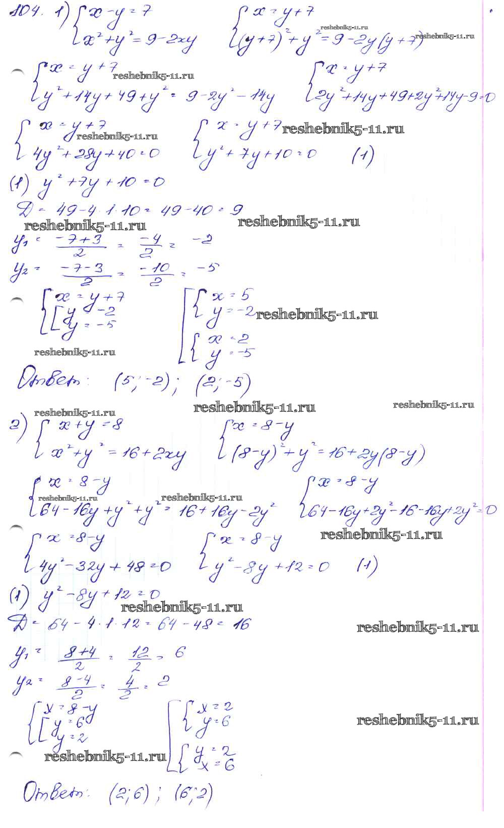 Готовая домашняя работа с ответами по Алгебре за 9 класс Кузнецова, Бунимович, Пигарев, Суворова Сборник заданий Дрофа 2008 ФГОС - Часть 2. Задания 104