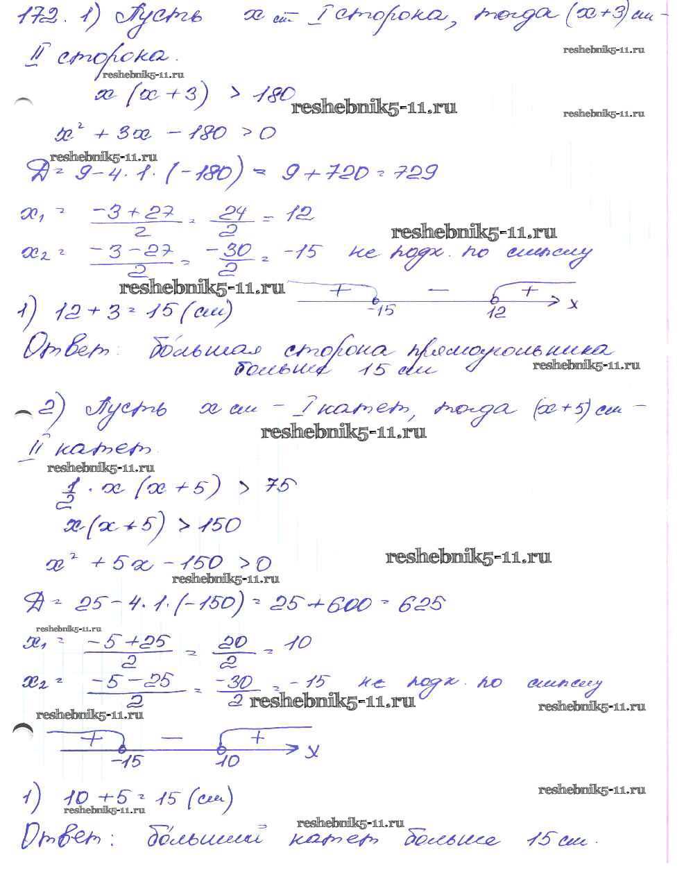 Готовая домашняя работа с ответами по Алгебре за 9 класс Кузнецова, Бунимович, Пигарев, Суворова Сборник заданий Дрофа 2008 ФГОС - Часть 2. Задания 172