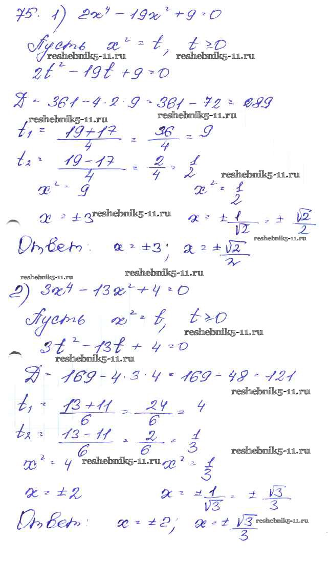 Готовая домашняя работа с ответами по Алгебре за 9 класс Кузнецова, Бунимович, Пигарев, Суворова Сборник заданий Дрофа 2008 ФГОС - Часть 2. Задания 75