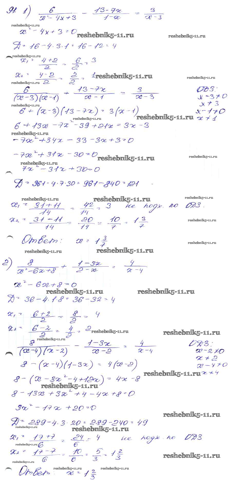 Готовая домашняя работа с ответами по Алгебре за 9 класс Кузнецова, Бунимович, Пигарев, Суворова Сборник заданий Дрофа 2008 ФГОС - Часть 2. Задания 91