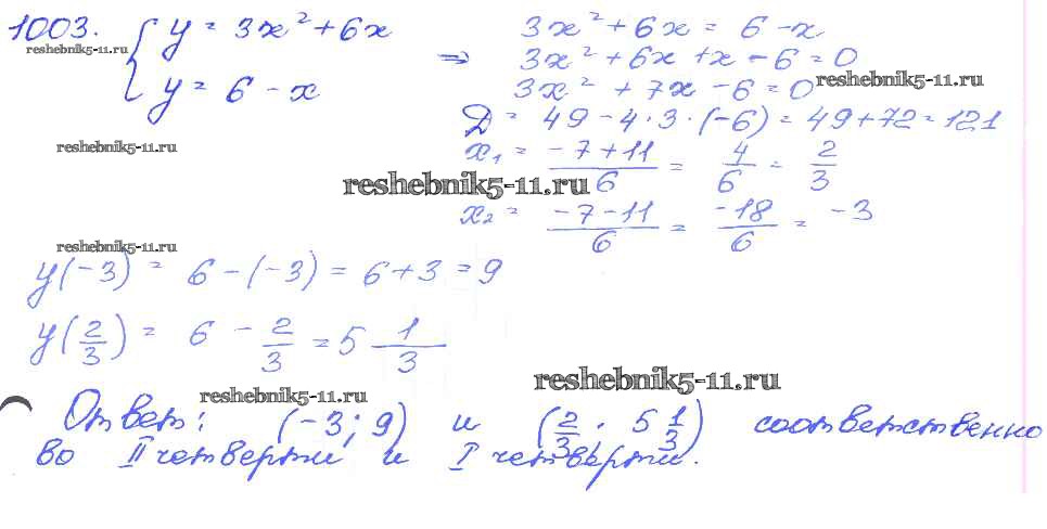 Готовая домашняя работа с ответами по Алгебре за 9 класс Кузнецова, Бунимович, Пигарев, Суворова Сборник заданий Дрофа 2008 ФГОС - Приложение 1003