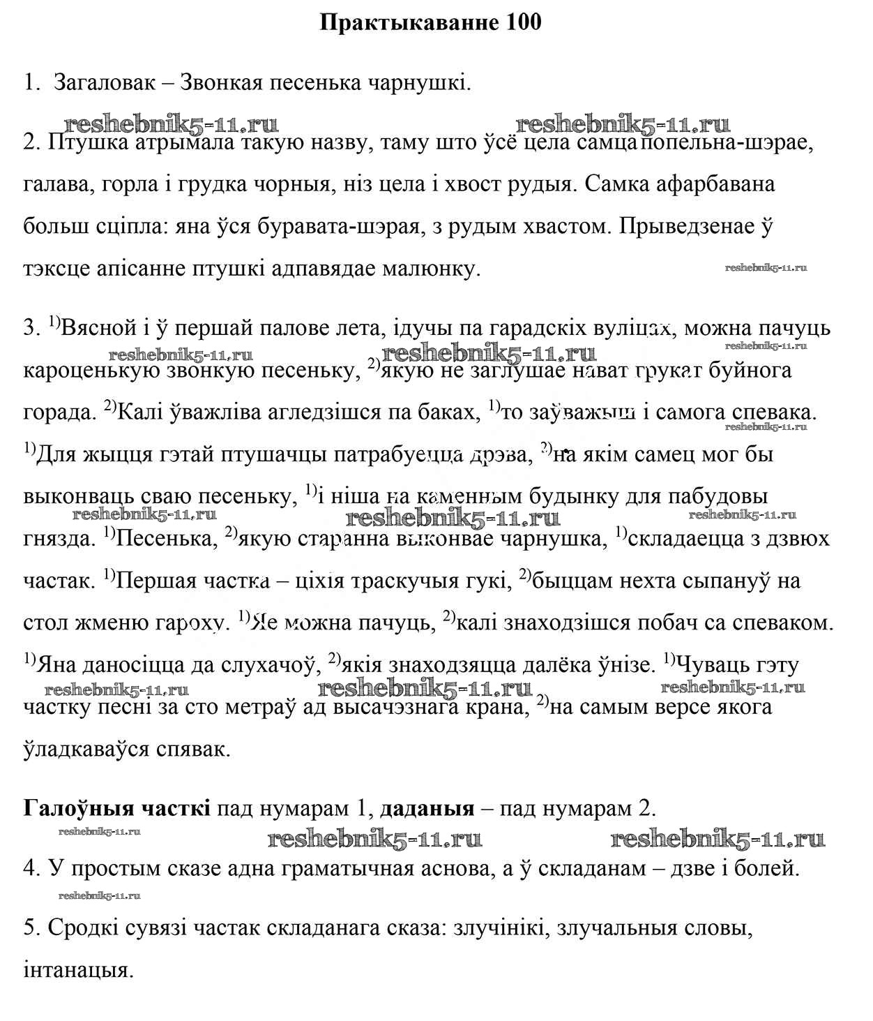Готовая домашняя работа с ответами по Белорусскому языку за 9 класс Валочка, Васюковіч, Зелянко, Якуба, Байкова Учебник Национальный институт образования 2019 ФГОС - Практыкаванні 100