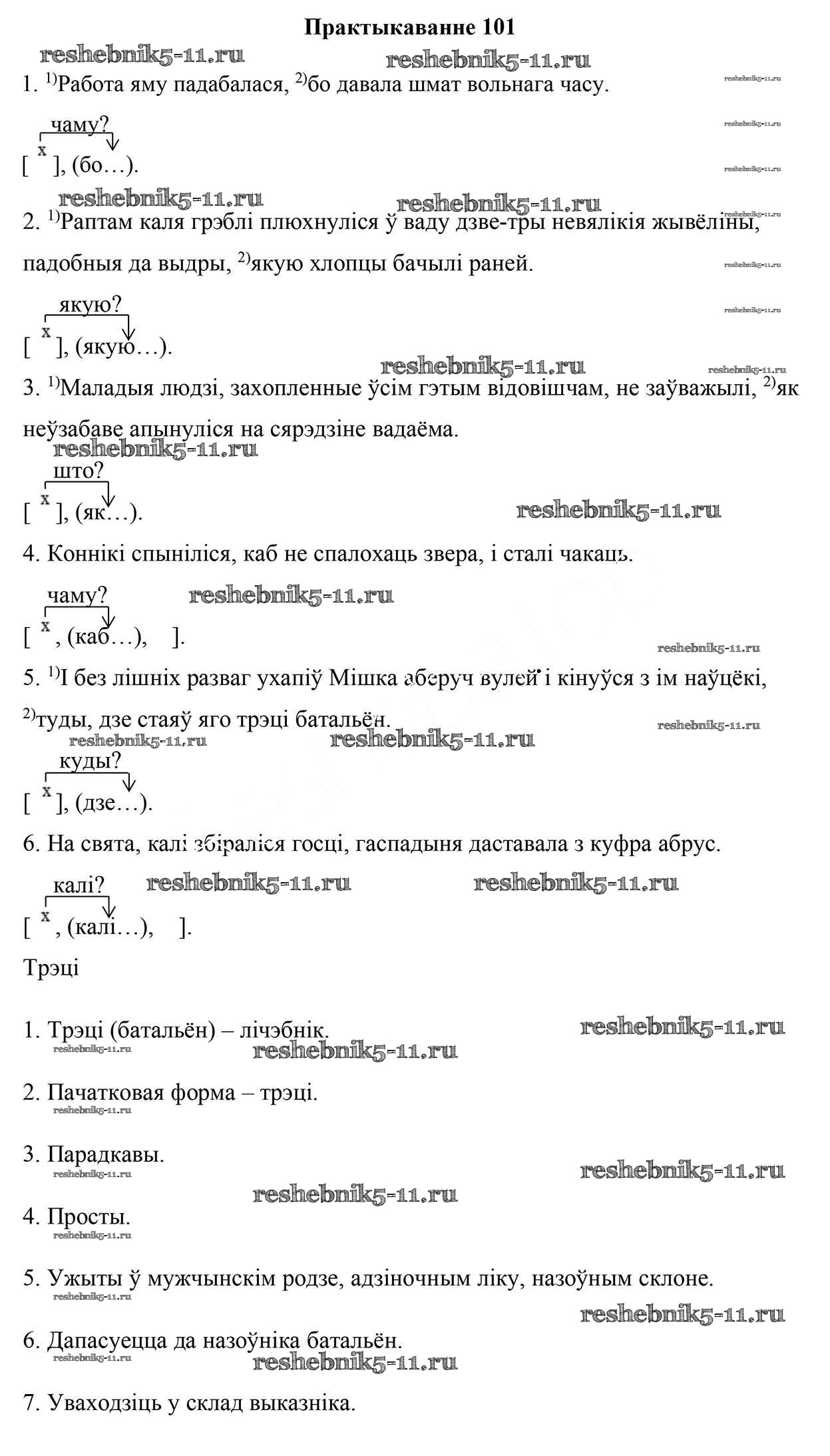 Готовая домашняя работа с ответами по Белорусскому языку за 9 класс Валочка, Васюковіч, Зелянко, Якуба, Байкова Учебник Национальный институт образования 2019 ФГОС - Практыкаванні 101