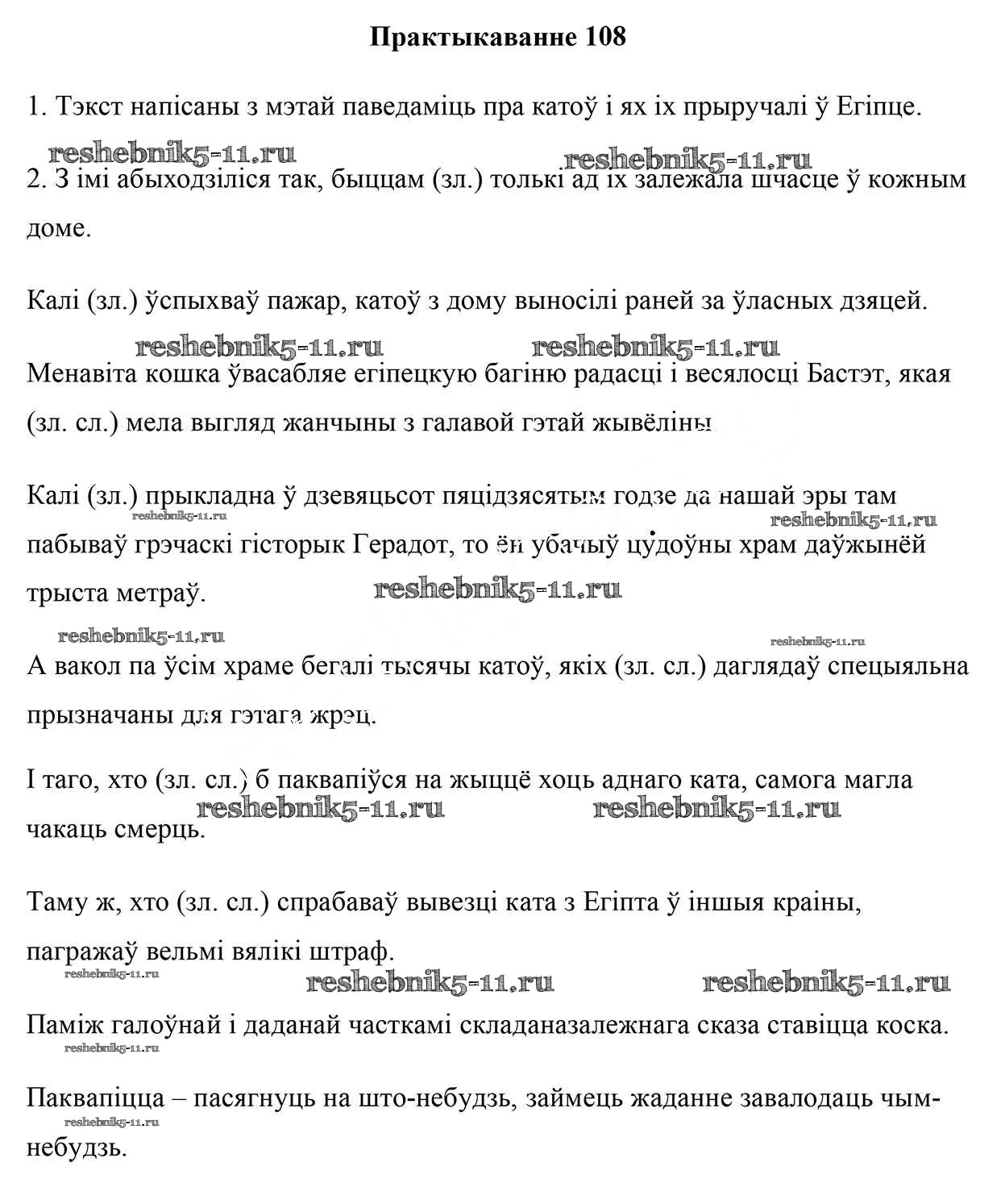 Готовая домашняя работа с ответами по Белорусскому языку за 9 класс Валочка, Васюковіч, Зелянко, Якуба, Байкова Учебник Национальный институт образования 2019 ФГОС - Практыкаванні 108