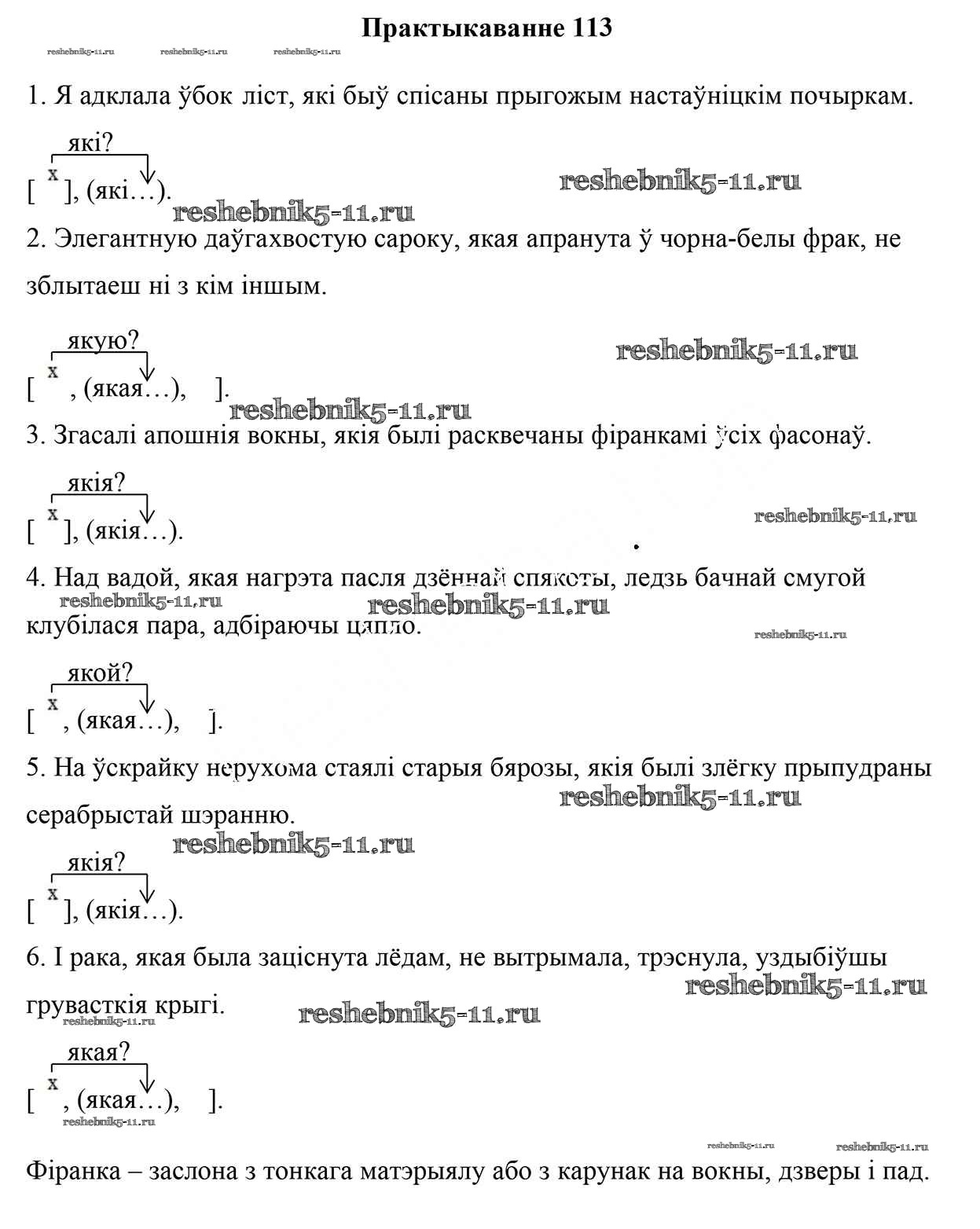 Готовая домашняя работа с ответами по Белорусскому языку за 9 класс Валочка, Васюковіч, Зелянко, Якуба, Байкова Учебник Национальный институт образования 2019 ФГОС - Практыкаванні 113