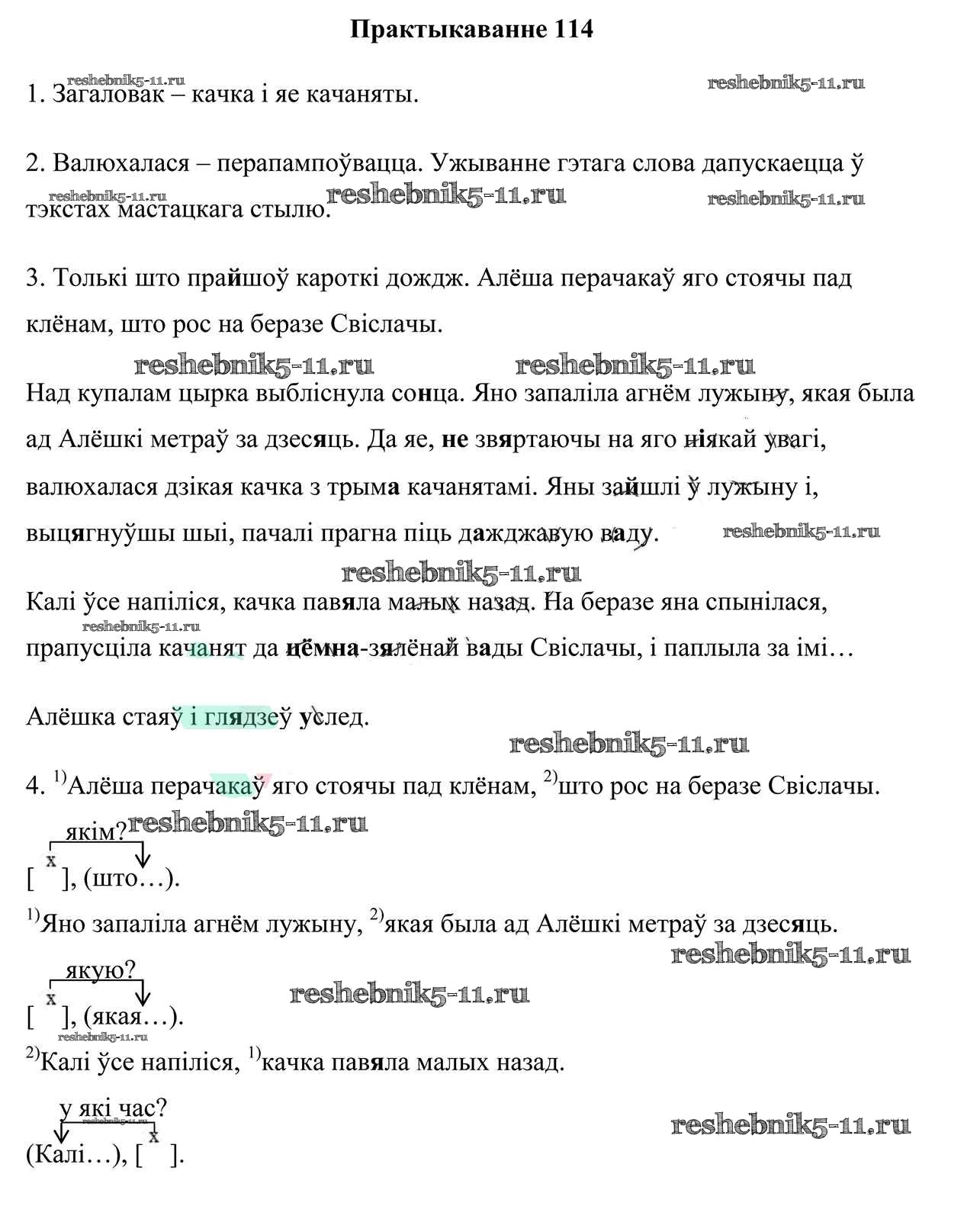 Готовая домашняя работа с ответами по Белорусскому языку за 9 класс Валочка, Васюковіч, Зелянко, Якуба, Байкова Учебник Национальный институт образования 2019 ФГОС - Практыкаванні 114