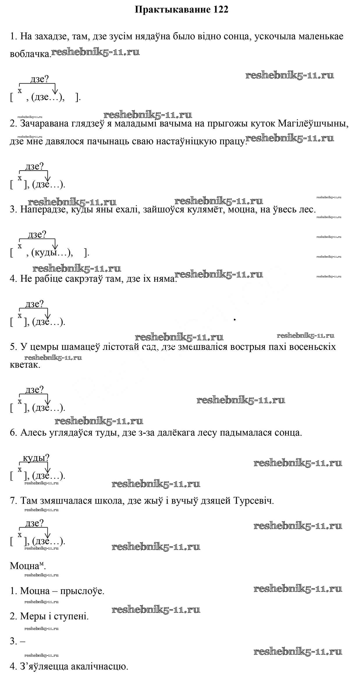 Готовая домашняя работа с ответами по Белорусскому языку за 9 класс Валочка, Васюковіч, Зелянко, Якуба, Байкова Учебник Национальный институт образования 2019 ФГОС - Практыкаванні 122