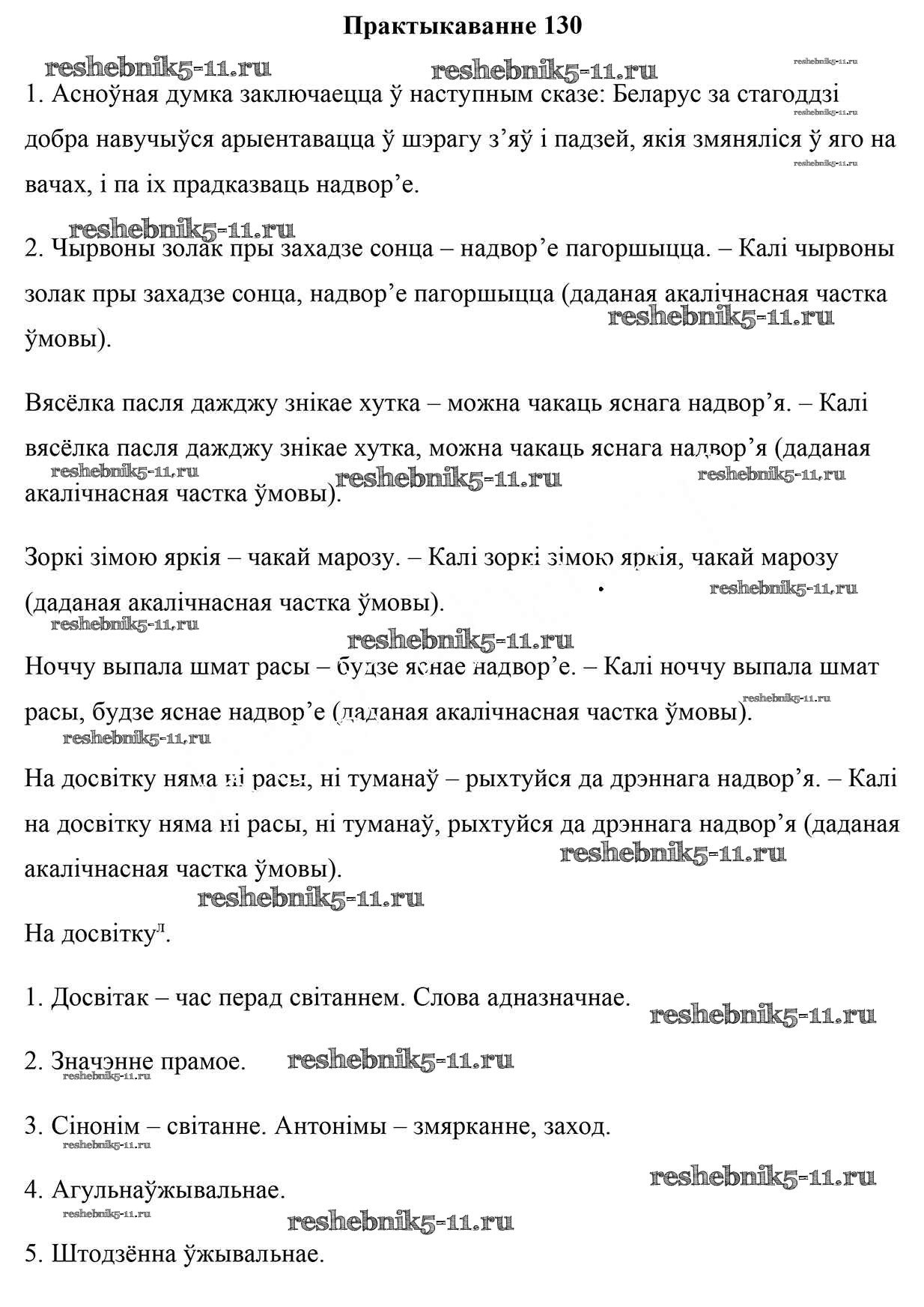 Готовая домашняя работа с ответами по Белорусскому языку за 9 класс Валочка, Васюковіч, Зелянко, Якуба, Байкова Учебник Национальный институт образования 2019 ФГОС - Практыкаванні 130