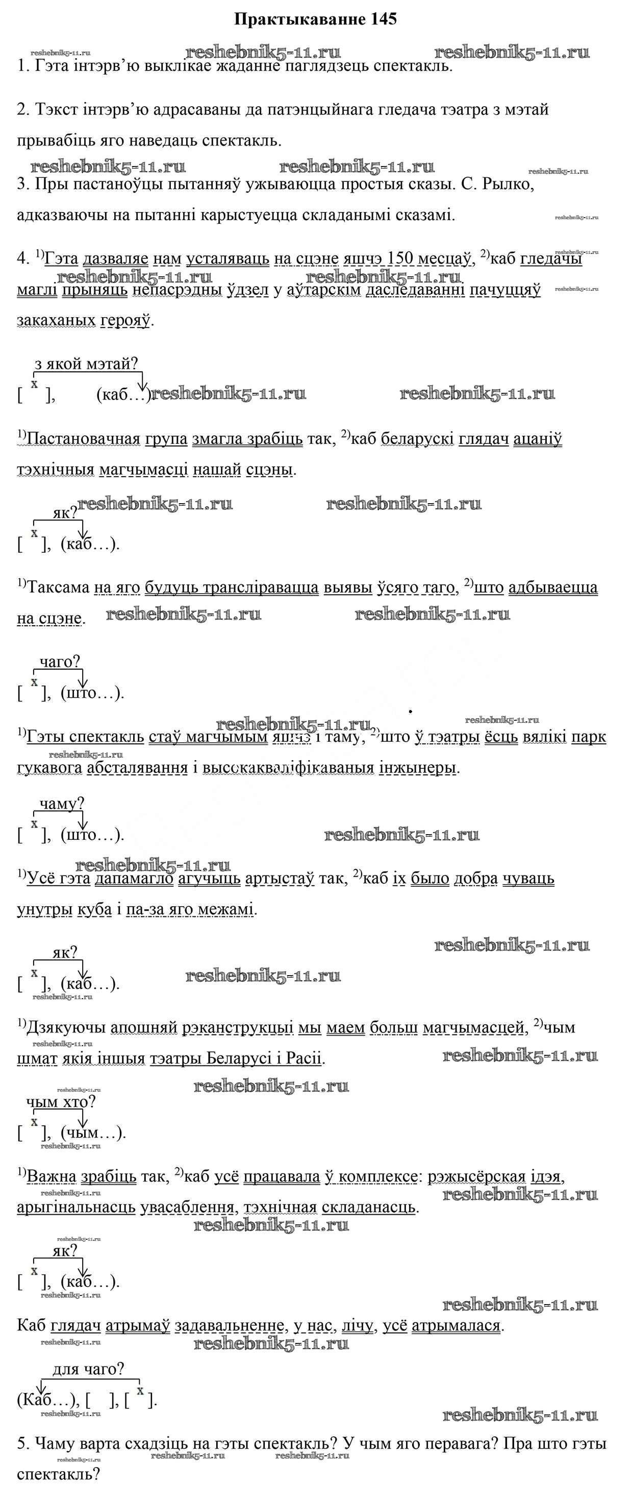 Готовая домашняя работа с ответами по Белорусскому языку за 9 класс Валочка, Васюковіч, Зелянко, Якуба, Байкова Учебник Национальный институт образования 2019 ФГОС - Практыкаванні 145