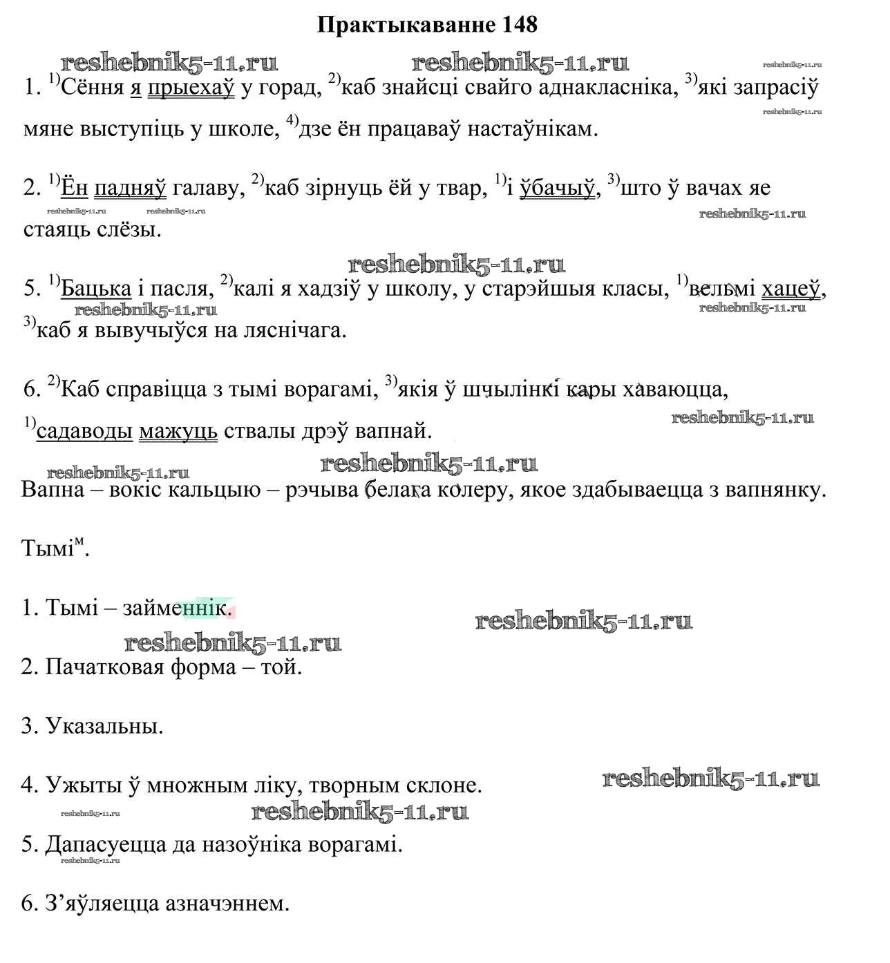 Готовая домашняя работа с ответами по Белорусскому языку за 9 класс Валочка, Васюковіч, Зелянко, Якуба, Байкова Учебник Национальный институт образования 2019 ФГОС - Практыкаванні 148