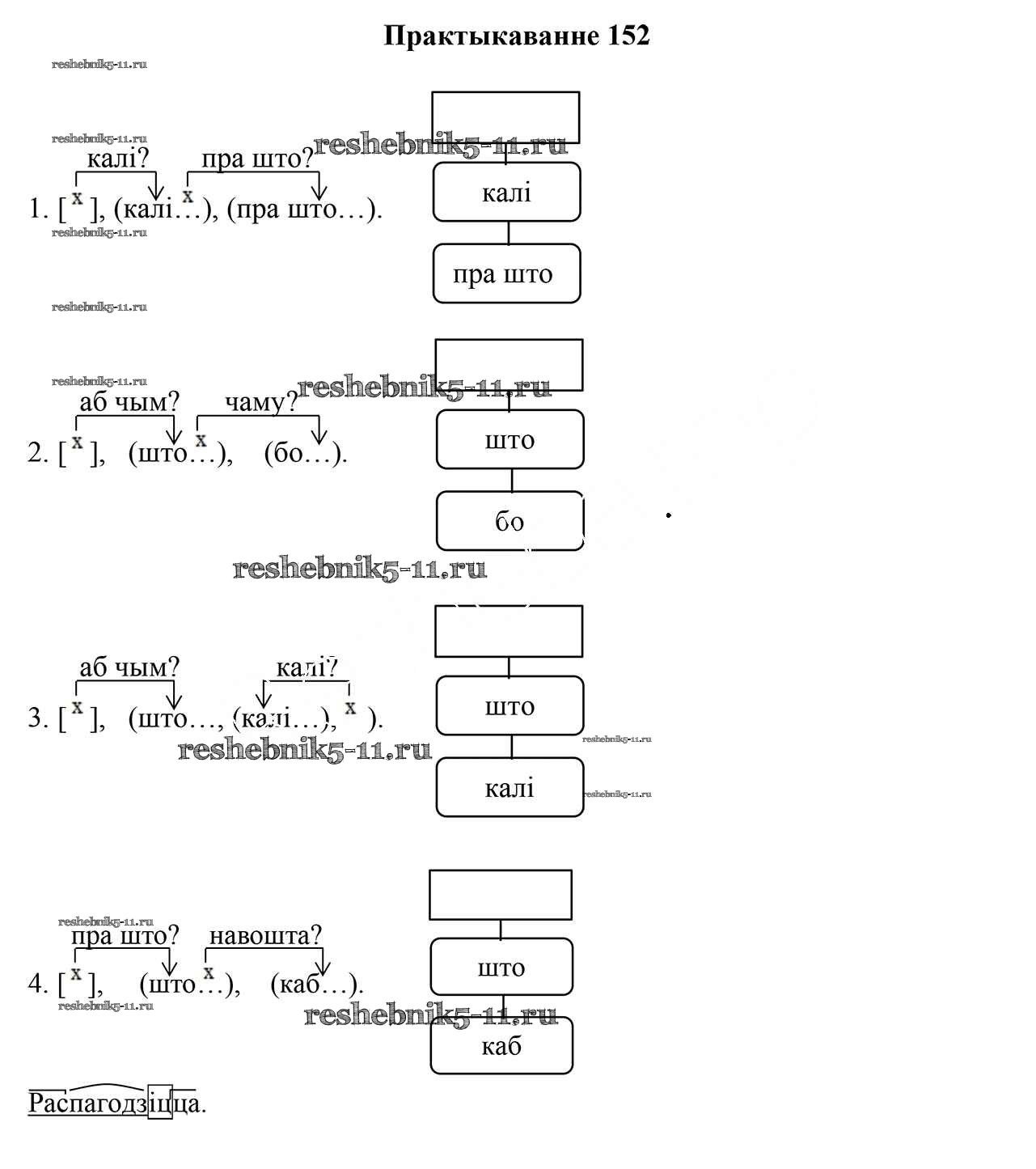 Готовая домашняя работа с ответами по Белорусскому языку за 9 класс Валочка, Васюковіч, Зелянко, Якуба, Байкова Учебник Национальный институт образования 2019 ФГОС - Практыкаванні 152