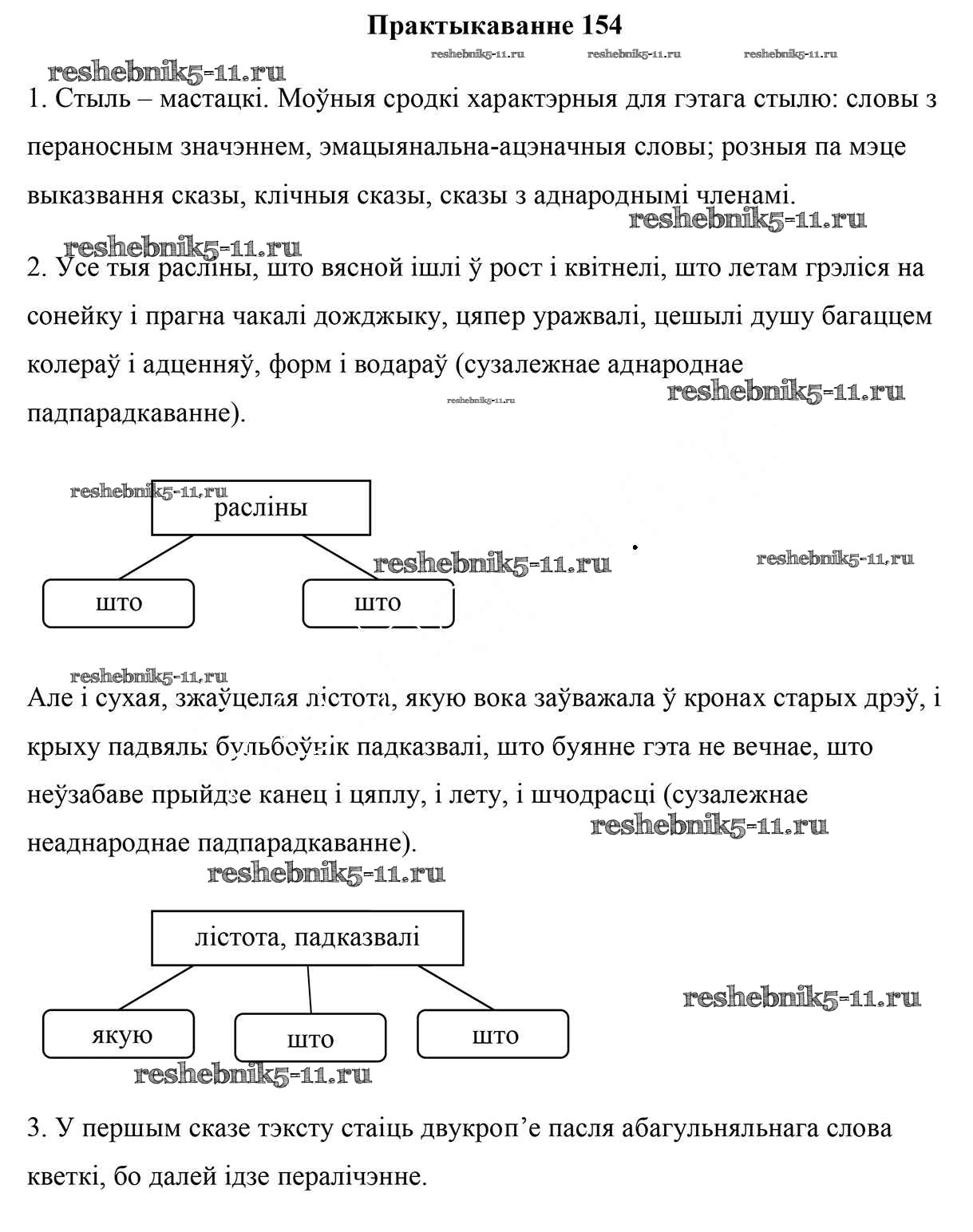 Готовая домашняя работа с ответами по Белорусскому языку за 9 класс Валочка, Васюковіч, Зелянко, Якуба, Байкова Учебник Национальный институт образования 2019 ФГОС - Практыкаванні 154