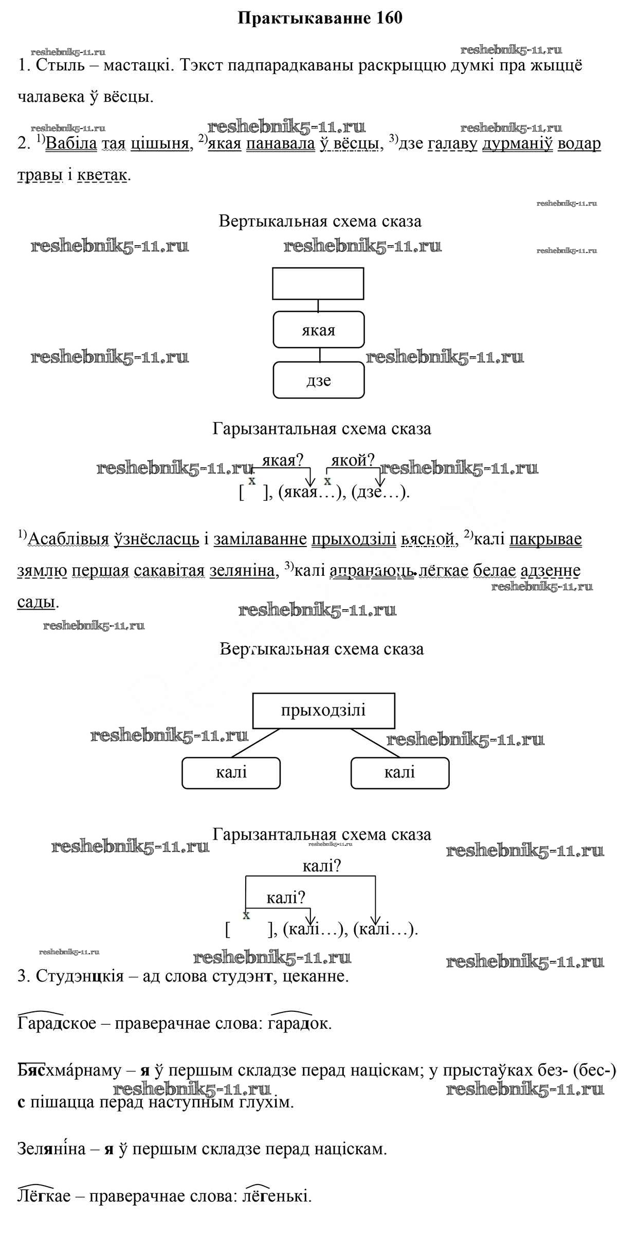 Готовая домашняя работа с ответами по Белорусскому языку за 9 класс Валочка, Васюковіч, Зелянко, Якуба, Байкова Учебник Национальный институт образования 2019 ФГОС - Практыкаванні 160