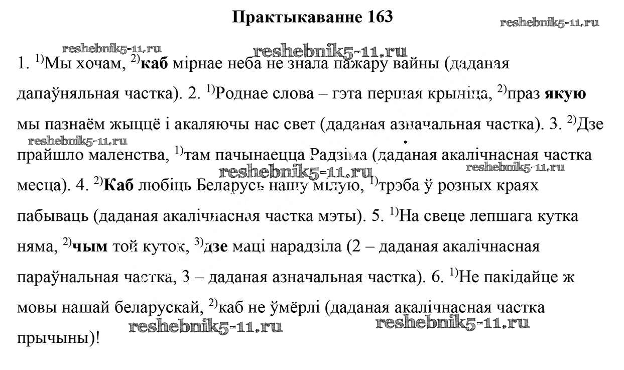 Готовая домашняя работа с ответами по Белорусскому языку за 9 класс Валочка, Васюковіч, Зелянко, Якуба, Байкова Учебник Национальный институт образования 2019 ФГОС - Практыкаванні 163