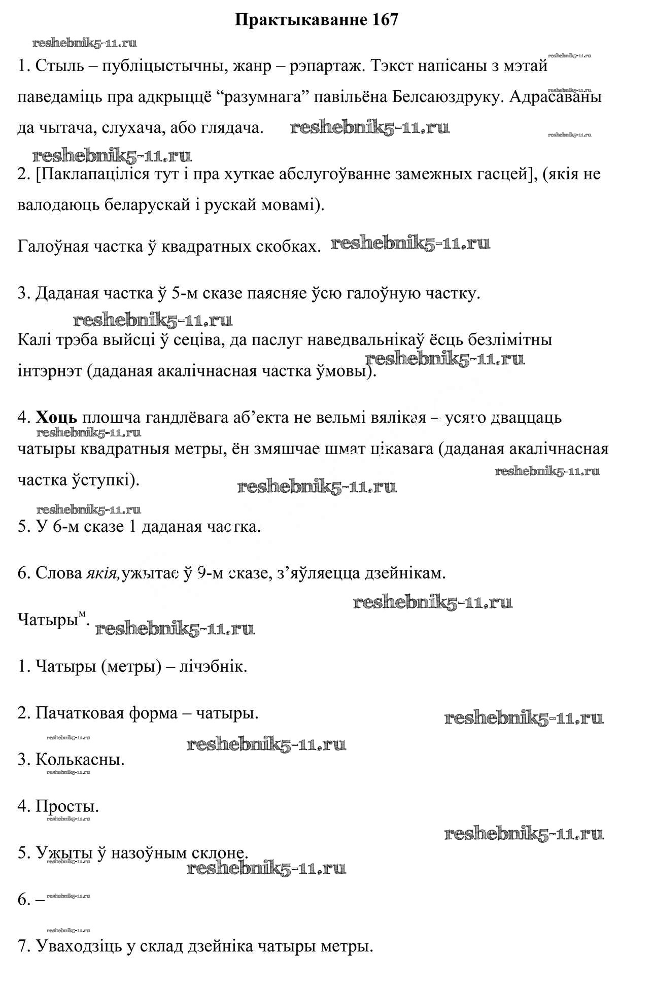 Готовая домашняя работа с ответами по Белорусскому языку за 9 класс Валочка, Васюковіч, Зелянко, Якуба, Байкова Учебник Национальный институт образования 2019 ФГОС - Практыкаванні 167