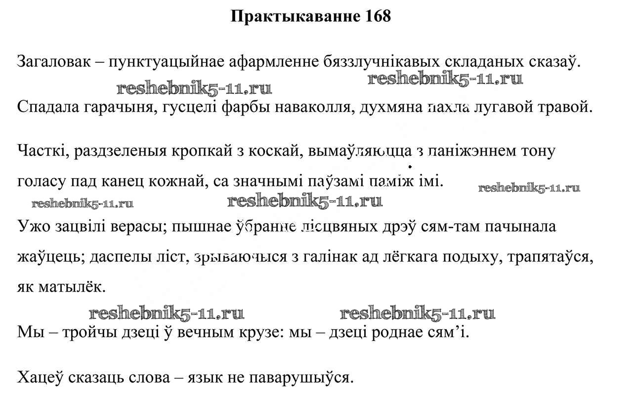 Готовая домашняя работа с ответами по Белорусскому языку за 9 класс Валочка, Васюковіч, Зелянко, Якуба, Байкова Учебник Национальный институт образования 2019 ФГОС - Практыкаванні 168