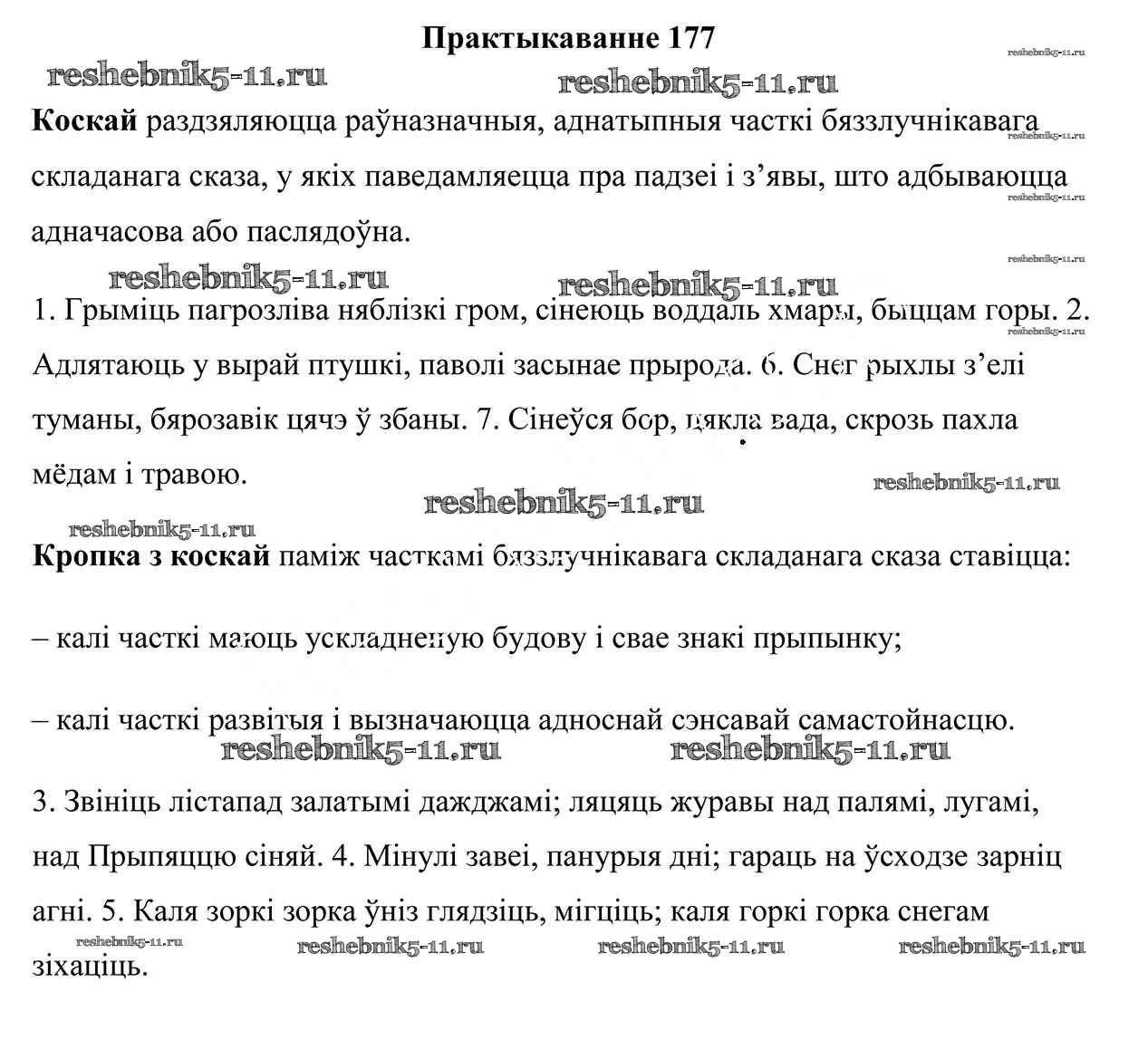 Готовая домашняя работа с ответами по Белорусскому языку за 9 класс Валочка, Васюковіч, Зелянко, Якуба, Байкова Учебник Национальный институт образования 2019 ФГОС - Практыкаванні 177