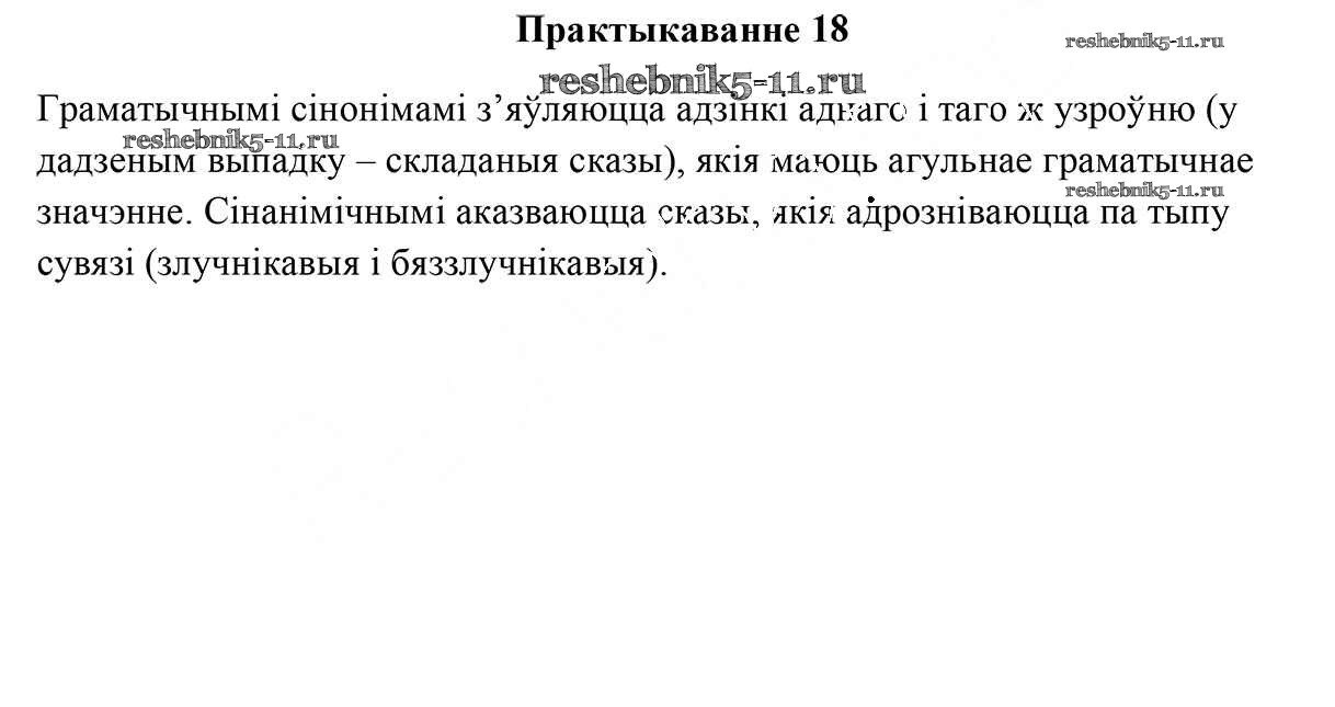 Готовая домашняя работа с ответами по Белорусскому языку за 9 класс Валочка, Васюковіч, Зелянко, Якуба, Байкова Учебник Национальный институт образования 2019 ФГОС - Практыкаванні 18