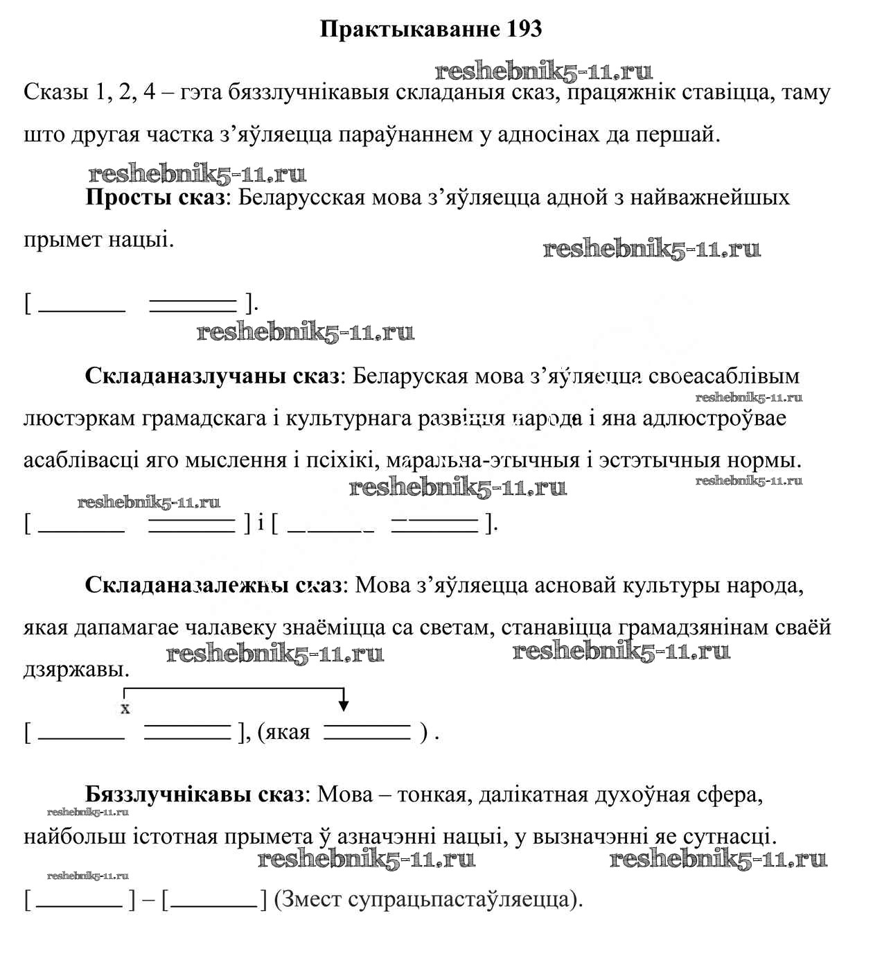 Готовая домашняя работа с ответами по Белорусскому языку за 9 класс Валочка, Васюковіч, Зелянко, Якуба, Байкова Учебник Национальный институт образования 2019 ФГОС - Практыкаванні 193