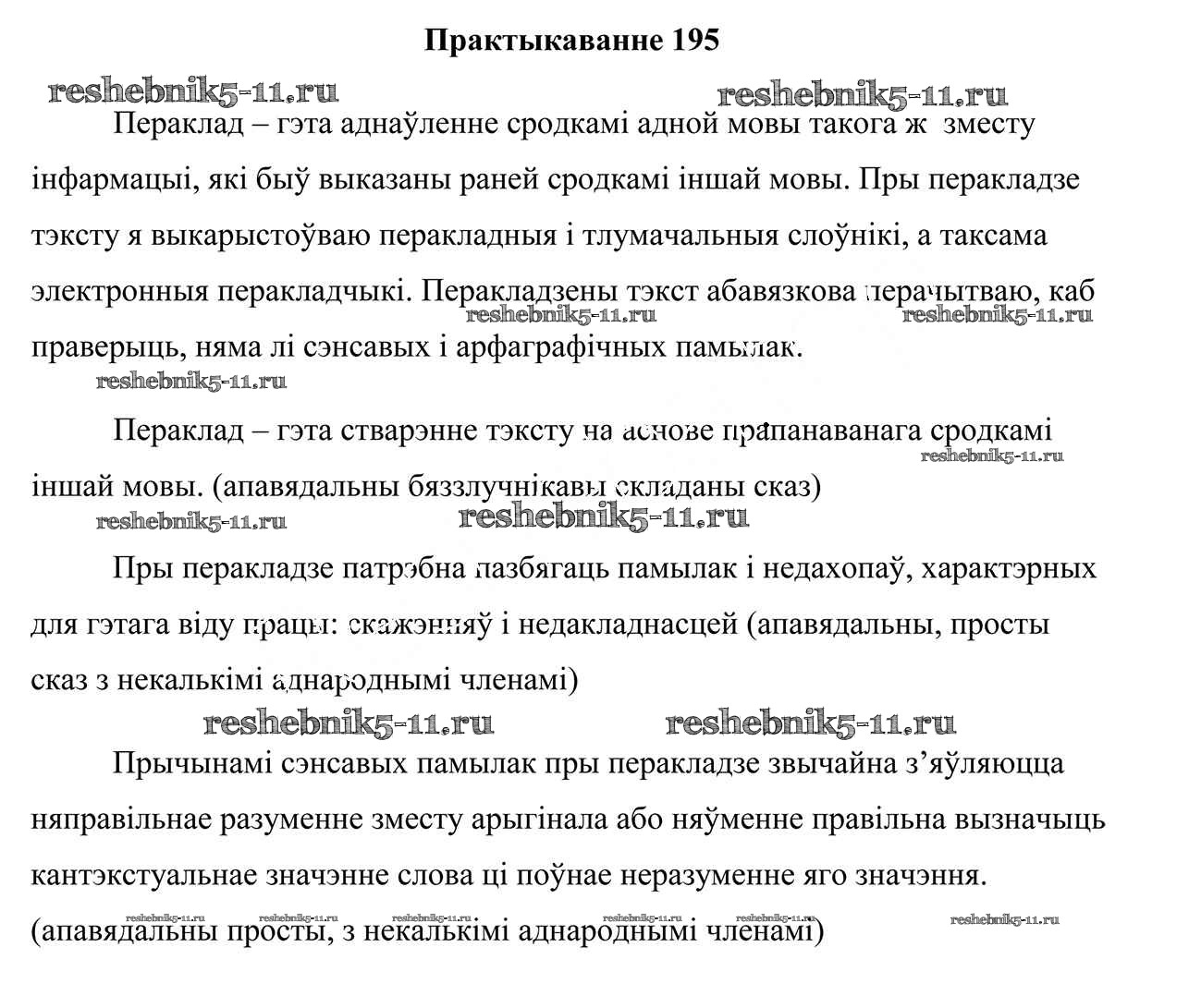 Готовая домашняя работа с ответами по Белорусскому языку за 9 класс Валочка, Васюковіч, Зелянко, Якуба, Байкова Учебник Национальный институт образования 2019 ФГОС - Практыкаванні 195