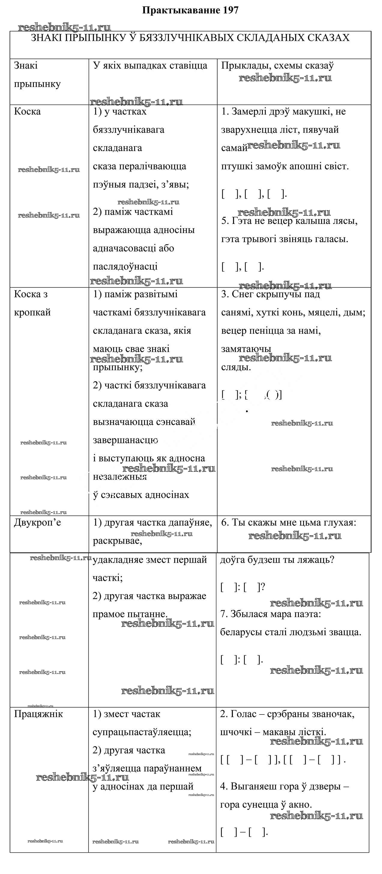 Готовая домашняя работа с ответами по Белорусскому языку за 9 класс Валочка, Васюковіч, Зелянко, Якуба, Байкова Учебник Национальный институт образования 2019 ФГОС - Практыкаванні 197