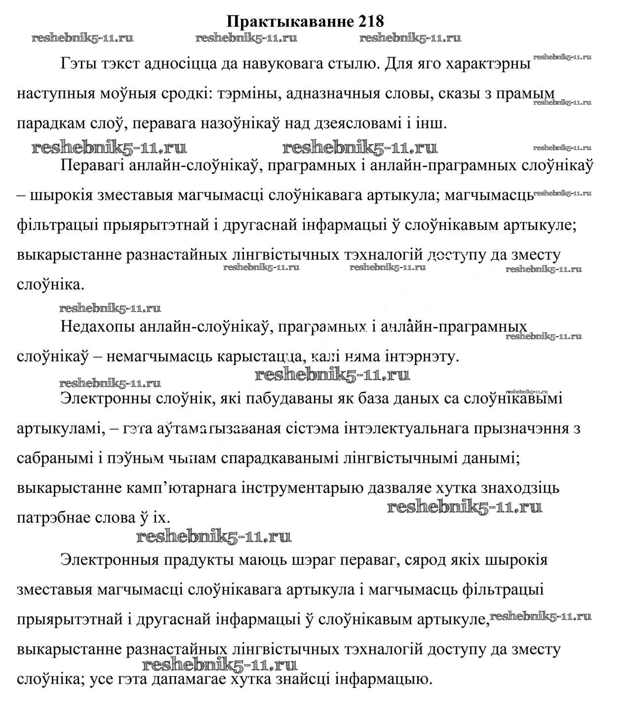 Готовая домашняя работа с ответами по Белорусскому языку за 9 класс Валочка, Васюковіч, Зелянко, Якуба, Байкова Учебник Национальный институт образования 2019 ФГОС - Практыкаванні 218