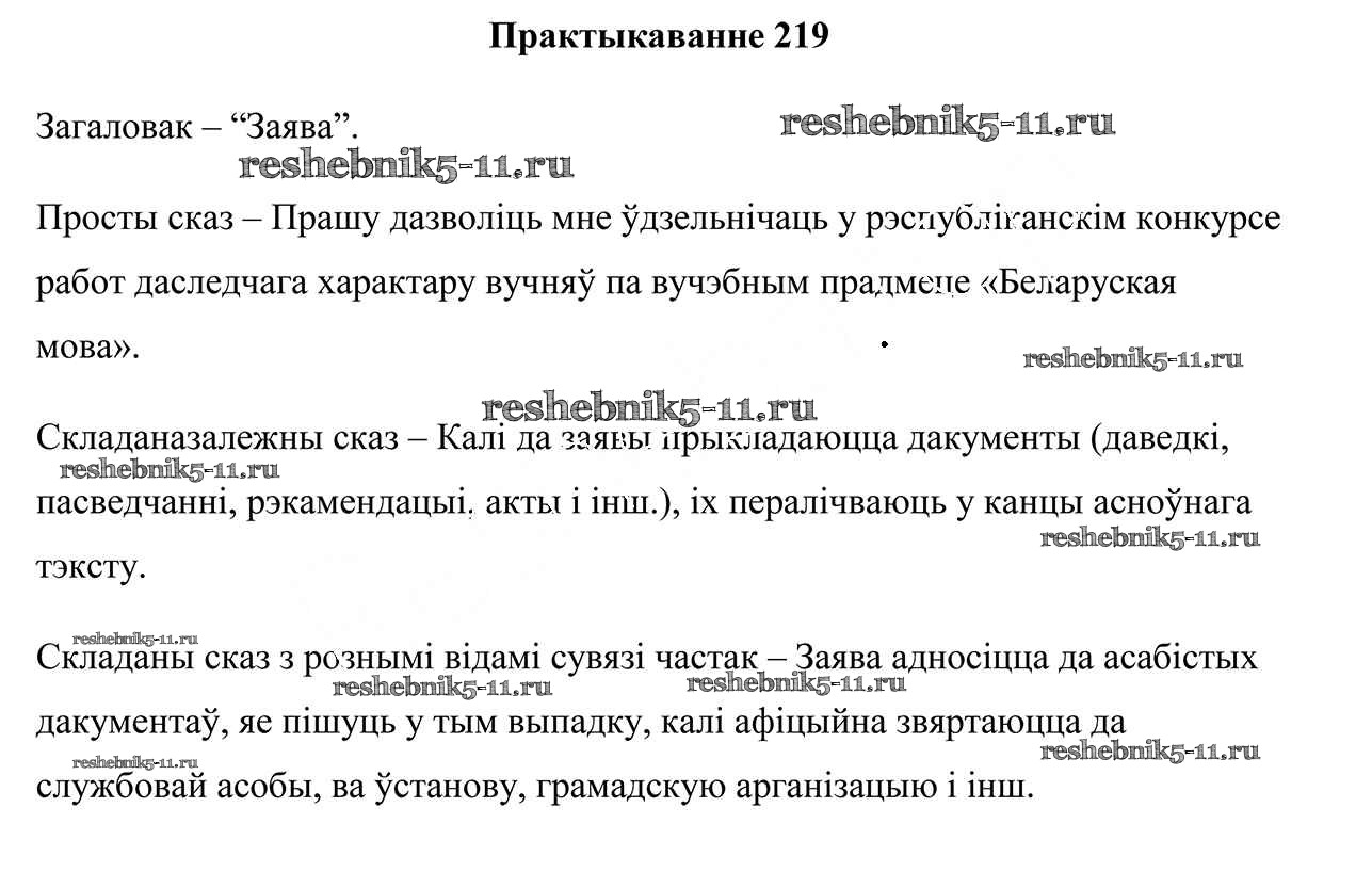 Готовая домашняя работа с ответами по Белорусскому языку за 9 класс Валочка, Васюковіч, Зелянко, Якуба, Байкова Учебник Национальный институт образования 2019 ФГОС - Практыкаванні 219