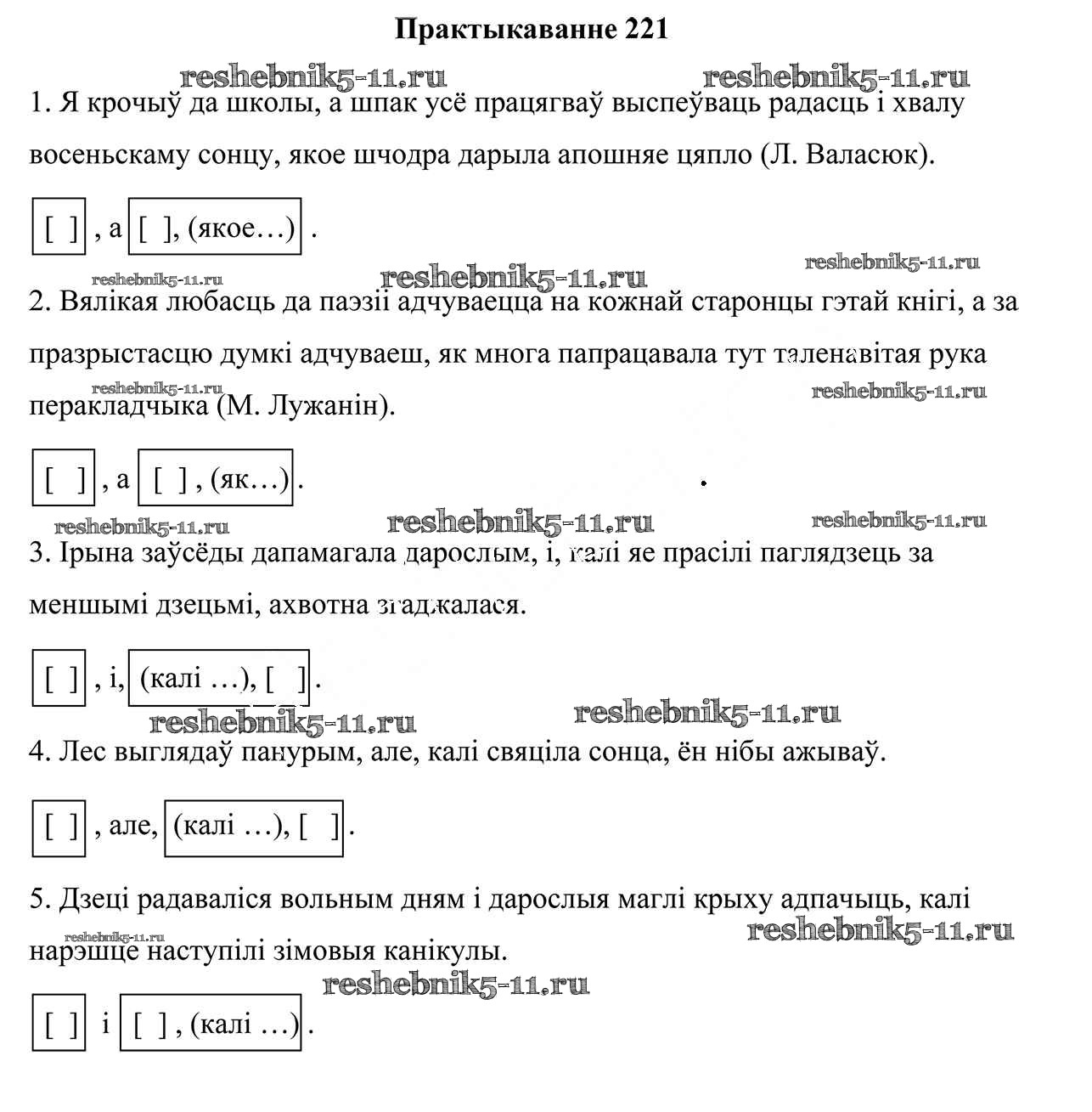 Готовая домашняя работа с ответами по Белорусскому языку за 9 класс Валочка, Васюковіч, Зелянко, Якуба, Байкова Учебник Национальный институт образования 2019 ФГОС - Практыкаванні 221