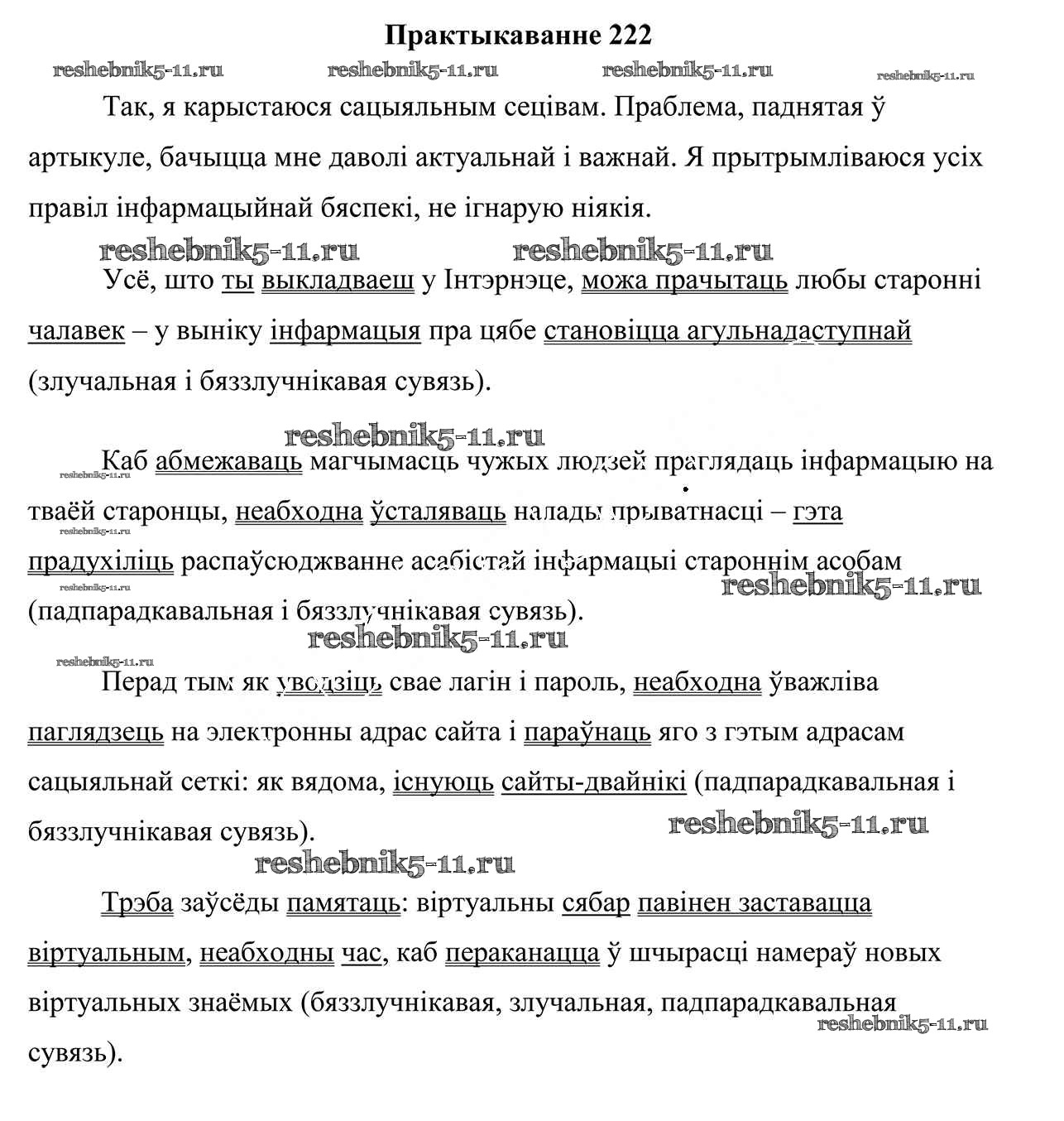 Готовая домашняя работа с ответами по Белорусскому языку за 9 класс Валочка, Васюковіч, Зелянко, Якуба, Байкова Учебник Национальный институт образования 2019 ФГОС - Практыкаванні 222