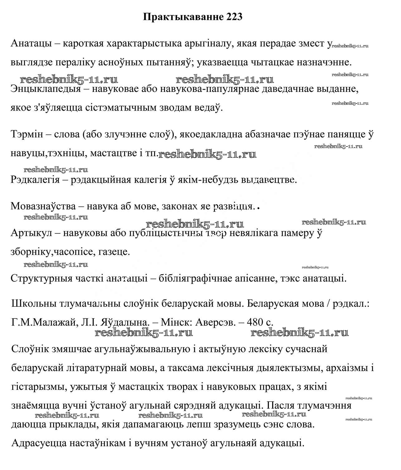 Готовая домашняя работа с ответами по Белорусскому языку за 9 класс Валочка, Васюковіч, Зелянко, Якуба, Байкова Учебник Национальный институт образования 2019 ФГОС - Практыкаванні 223