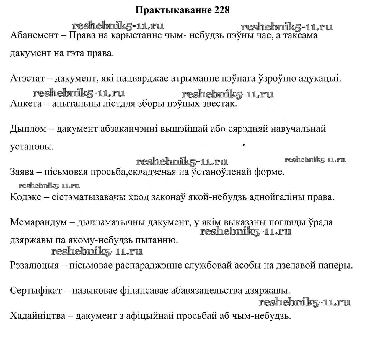 Готовая домашняя работа с ответами по Белорусскому языку за 9 класс Валочка, Васюковіч, Зелянко, Якуба, Байкова Учебник Национальный институт образования 2019 ФГОС - Практыкаванні 228