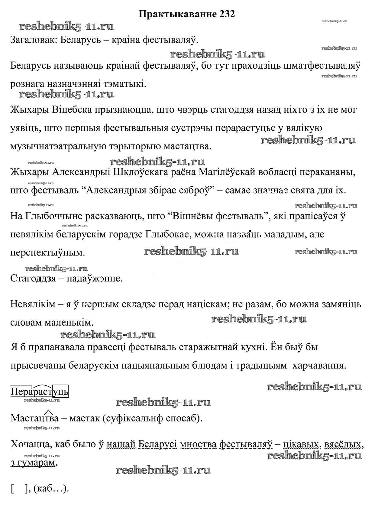 Готовая домашняя работа с ответами по Белорусскому языку за 9 класс Валочка, Васюковіч, Зелянко, Якуба, Байкова Учебник Национальный институт образования 2019 ФГОС - Практыкаванні 232