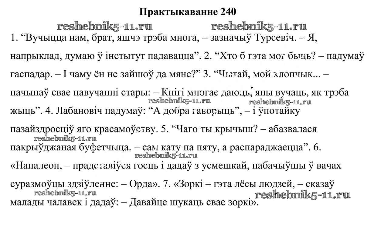 Готовая домашняя работа с ответами по Белорусскому языку за 9 класс Валочка, Васюковіч, Зелянко, Якуба, Байкова Учебник Национальный институт образования 2019 ФГОС - Практыкаванні 240