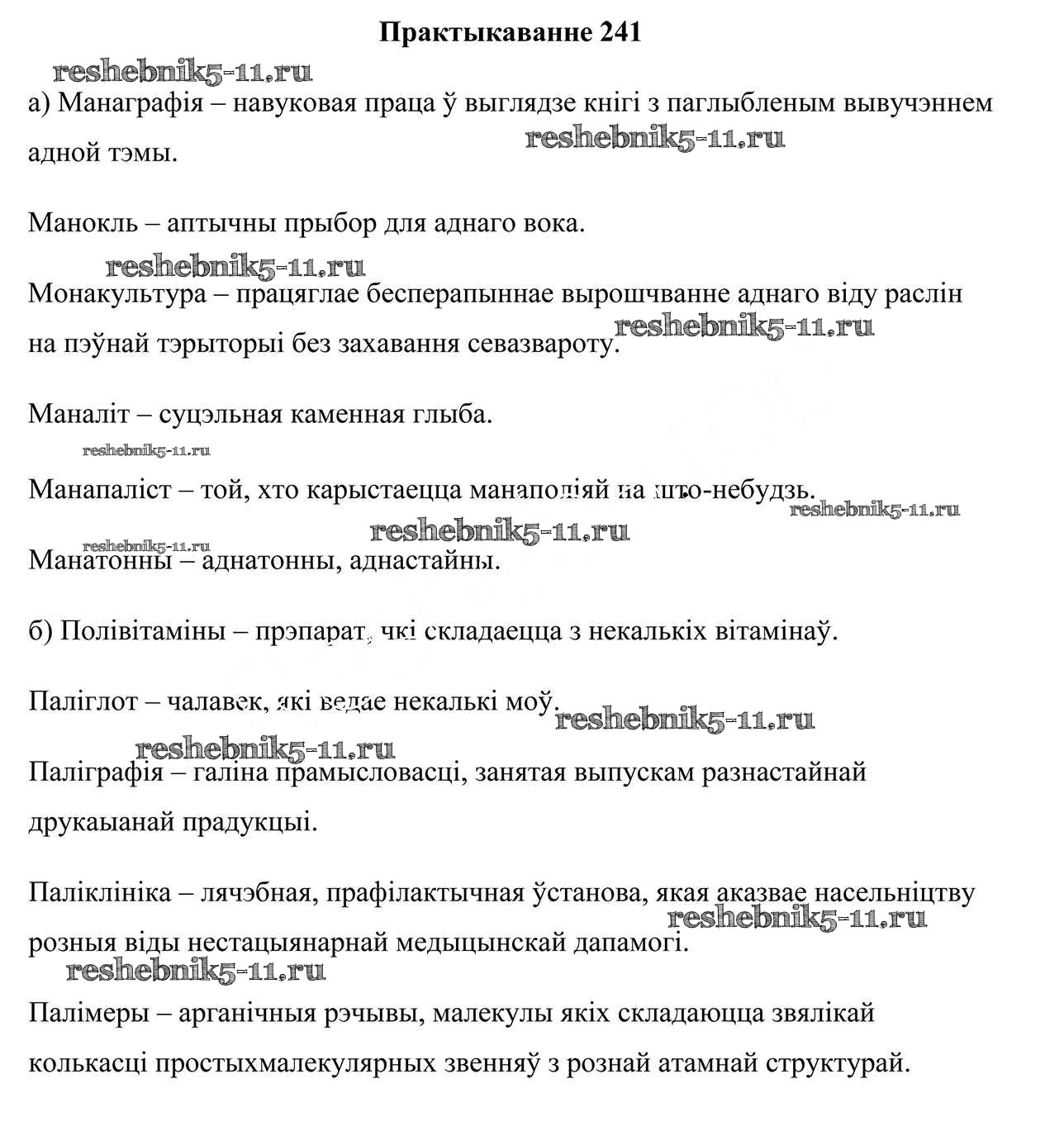 Готовая домашняя работа с ответами по Белорусскому языку за 9 класс Валочка, Васюковіч, Зелянко, Якуба, Байкова Учебник Национальный институт образования 2019 ФГОС - Практыкаванні 241