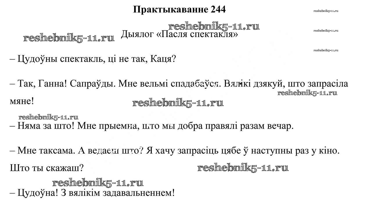 Готовая домашняя работа с ответами по Белорусскому языку за 9 класс Валочка, Васюковіч, Зелянко, Якуба, Байкова Учебник Национальный институт образования 2019 ФГОС - Практыкаванні 244