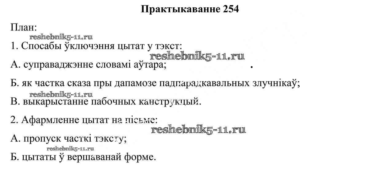 Готовая домашняя работа с ответами по Белорусскому языку за 9 класс Валочка, Васюковіч, Зелянко, Якуба, Байкова Учебник Национальный институт образования 2019 ФГОС - Практыкаванні 254