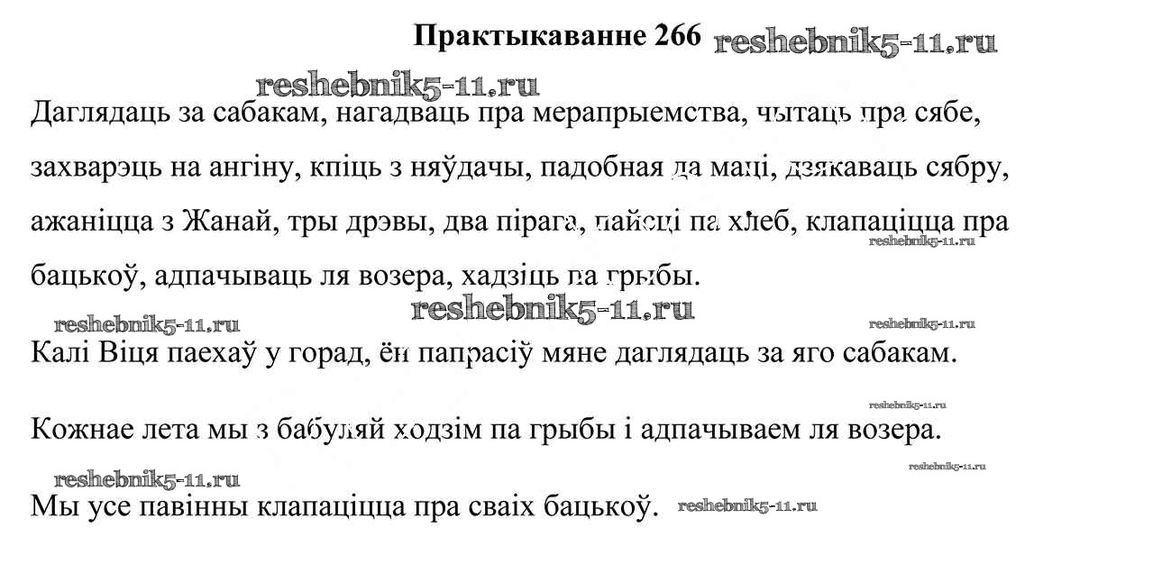Готовая домашняя работа с ответами по Белорусскому языку за 9 класс Валочка, Васюковіч, Зелянко, Якуба, Байкова Учебник Национальный институт образования 2019 ФГОС - Практыкаванні 266